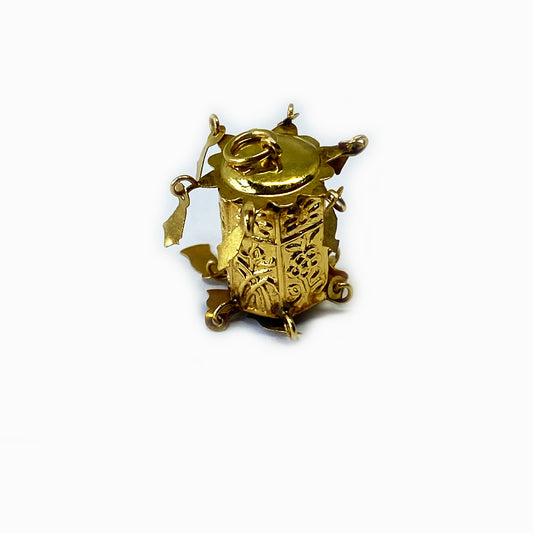 Vintage 14k Gold Beetle Horn Pendant, Natural Scarab Mandible, Stag Beetle