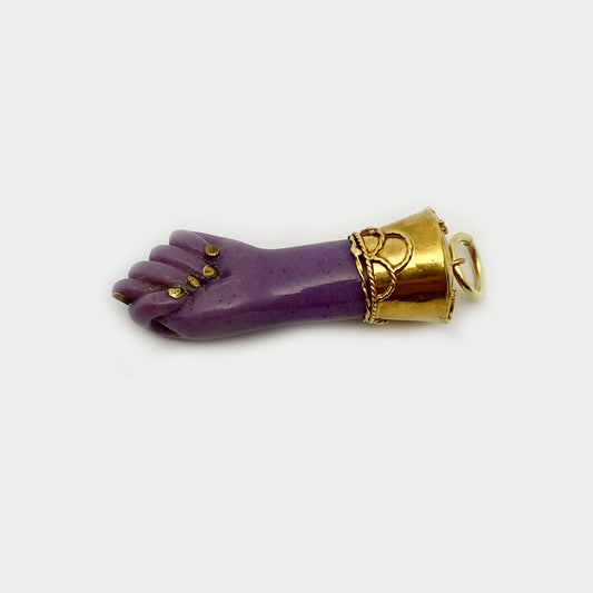 Vintage 14k Purple Figa, 14 ct Gold Hand Figa Charm