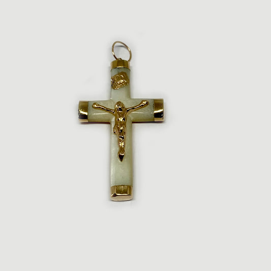 Antique 14k Gold Mother of Pearl Cross Pendant