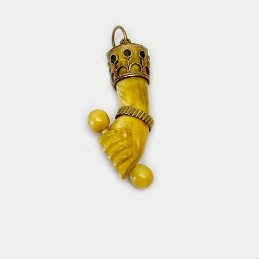 Antique 9k Gold Bone Figa Charm, Good Lucky Charm