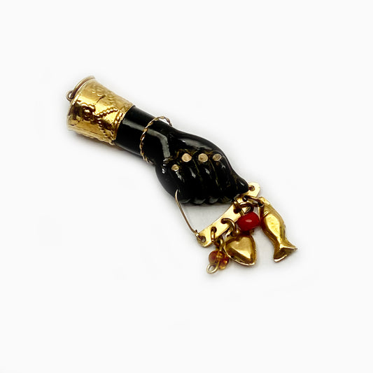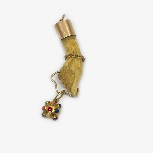 Antique 18K Gold Bone Fist, Victorian Figa Charm
