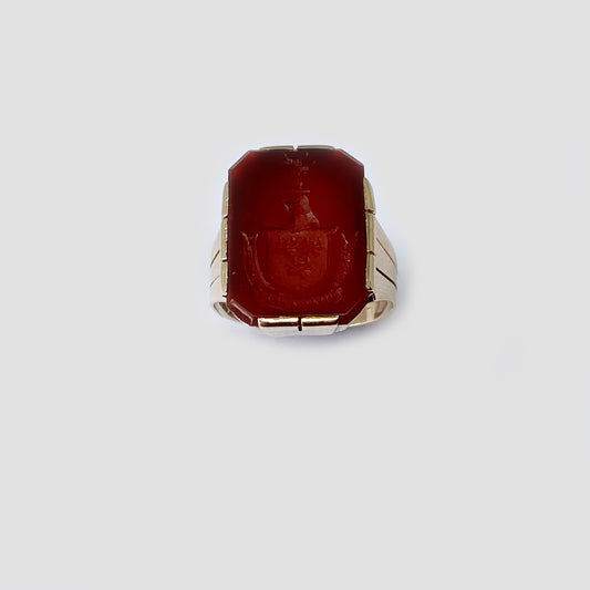Antique 14k Gold Carnelian Intaglio Signet Motto Ring