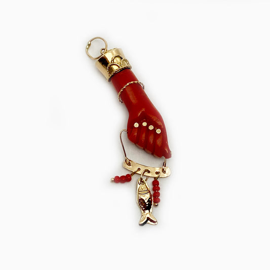 Antique 18k Gold Natural Coral Pearl Figa Charm