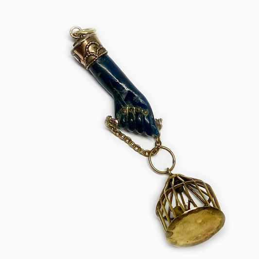 Vintage Figa Gold Plated Miniature Bird Cage,Blue Figa Charm