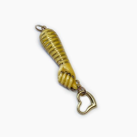 Vintage Antique Bone 18k Gold Heart Figa Charm
