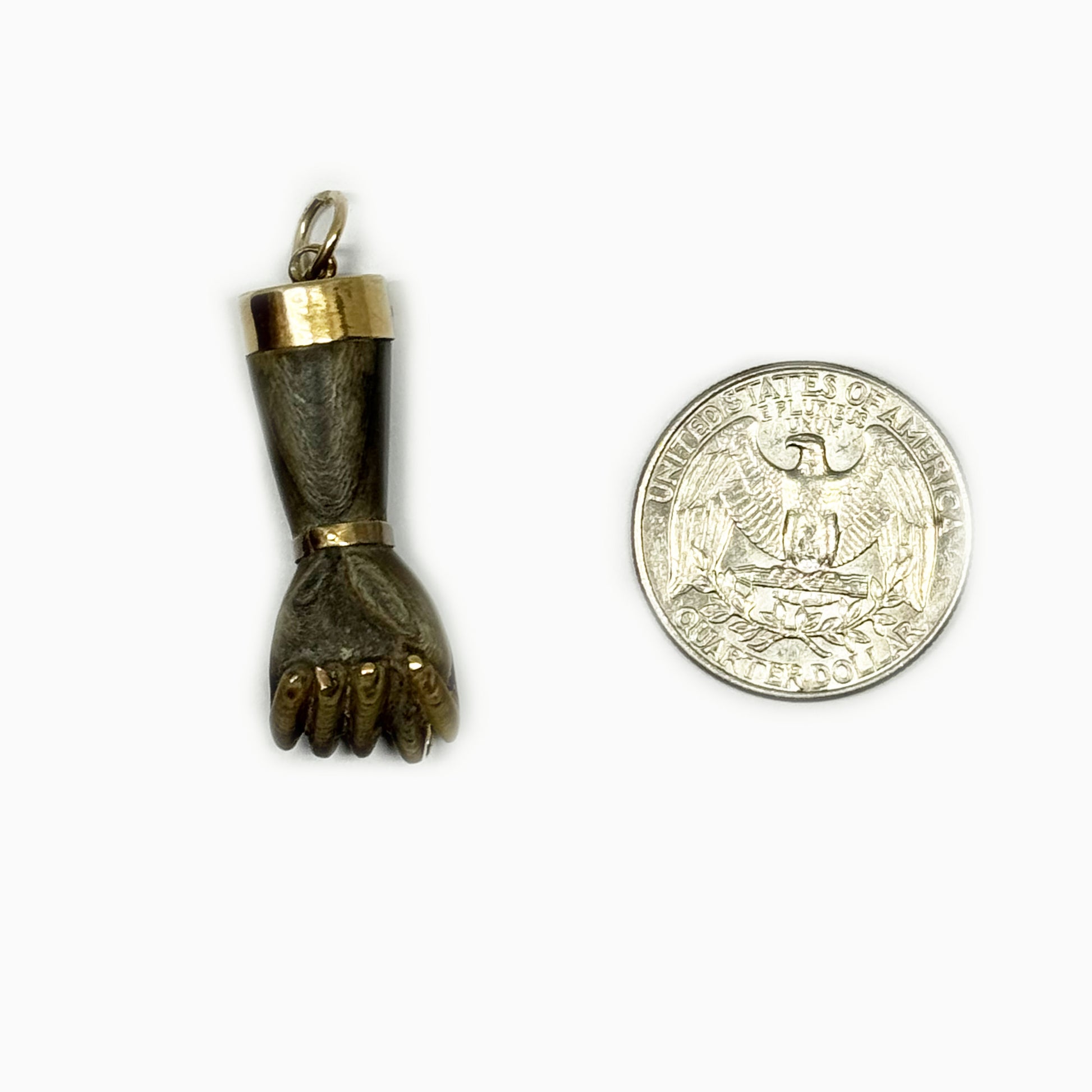 Antique 10k Figa Hand, Stained Horn Pendant, Lucky Charm, 1940s, Mano Fico, Figa Charm, Amulet, Evil Eye, 10 ct Gold, Vintage Hand Jewelry