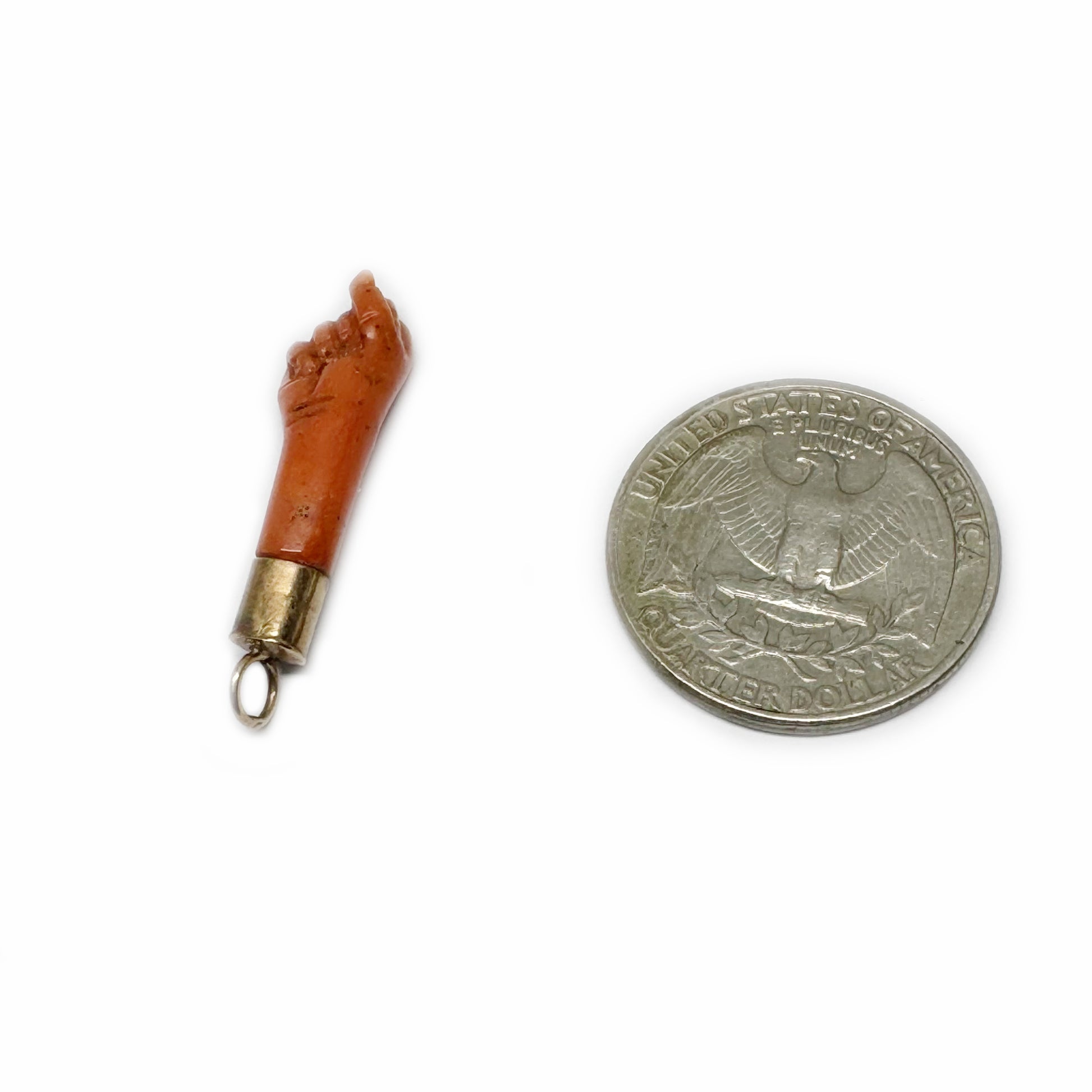 Antique 10k Gold Coral Figa, 10ct Gold, Mano Fico, Victorian Natural Mediterranean Coral, Fist Charm, Mano Figa, Figa Charm, Hand Pendant