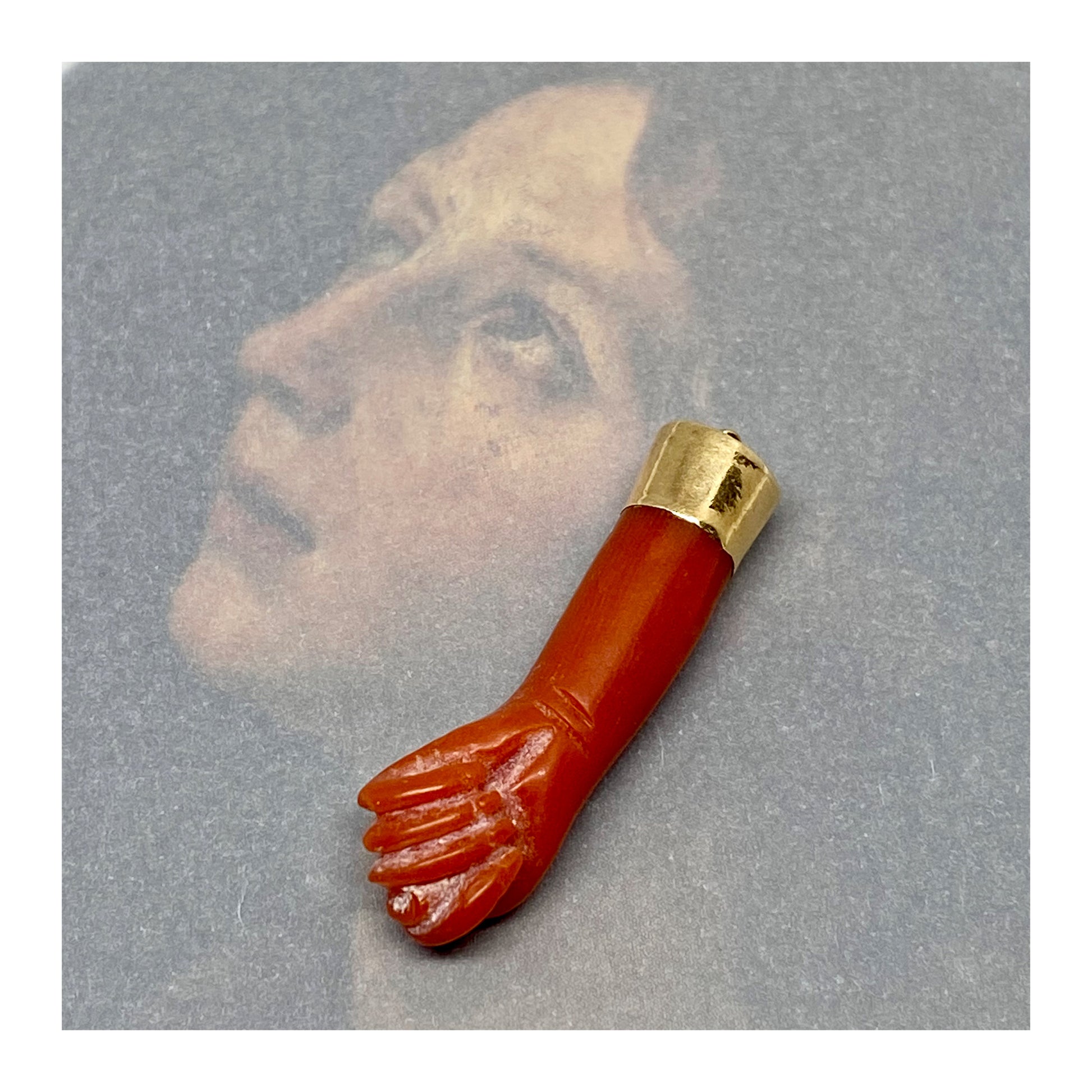Antique 14k Coral Figa, 14ct Gold Mano Fico, Victorian, Natural Mediterranean Coral, Fist Charm, 1800s, Mano Figa, Figa Charm, Hand Jewelry