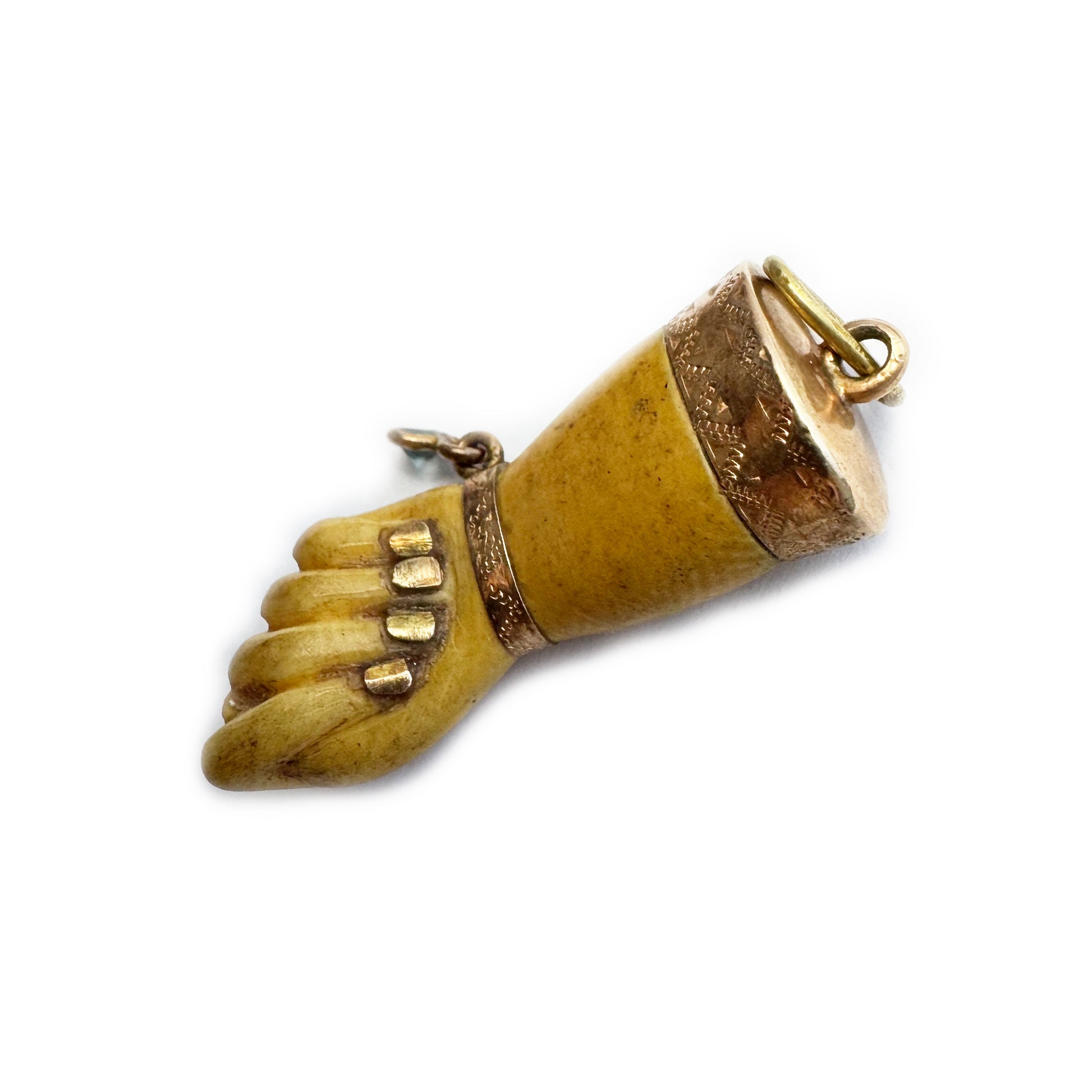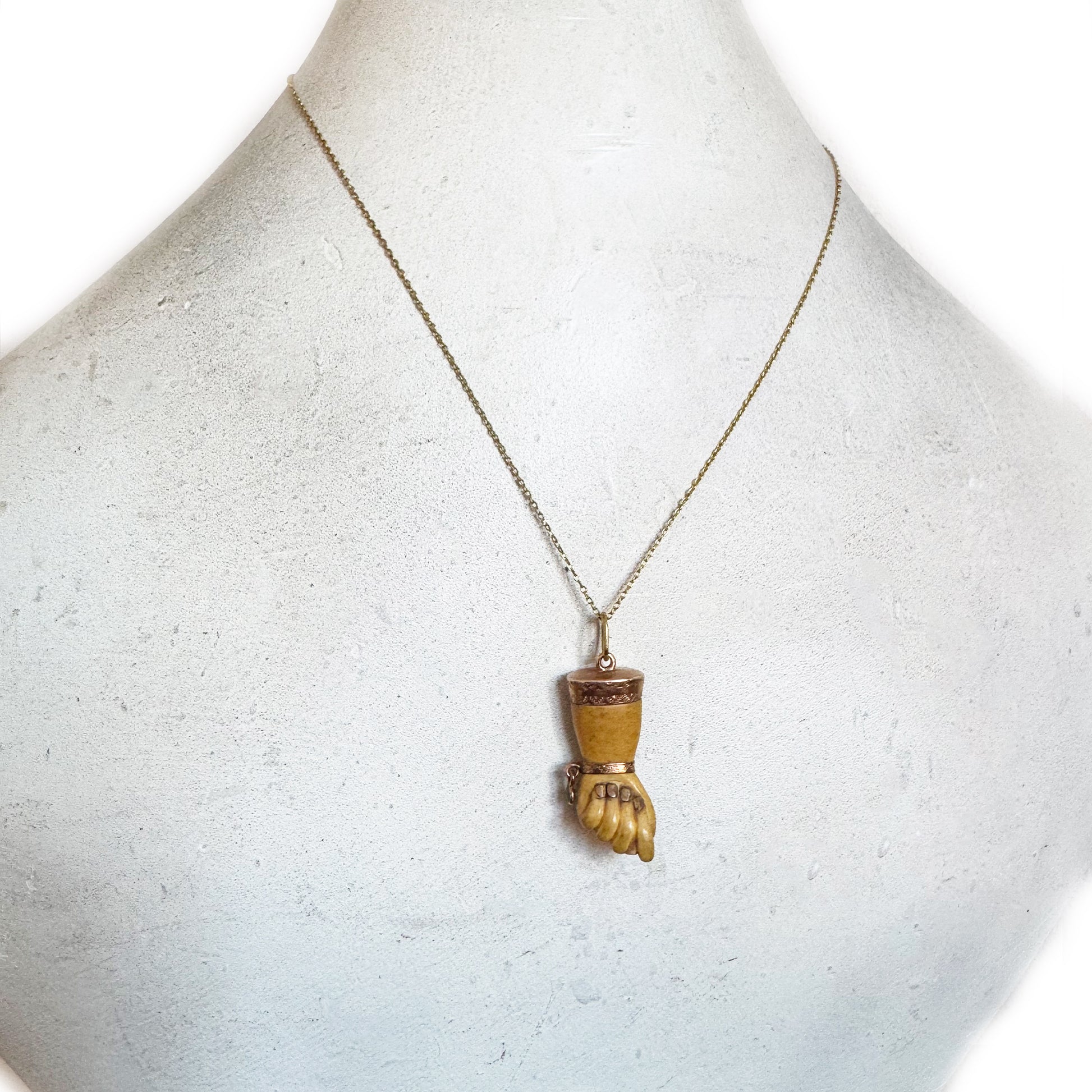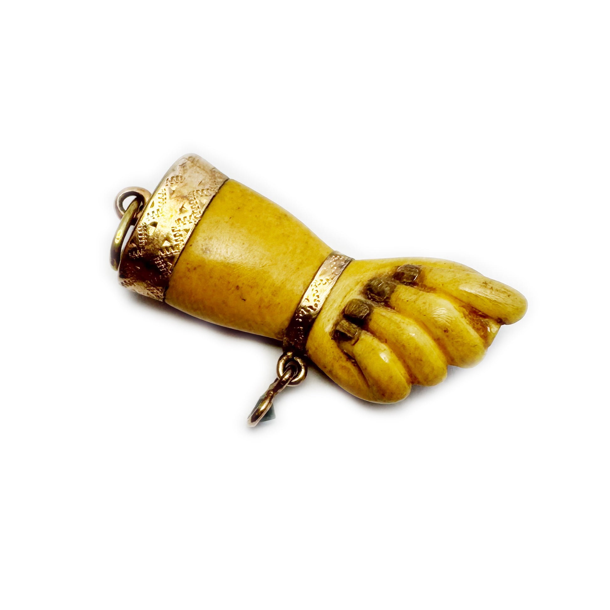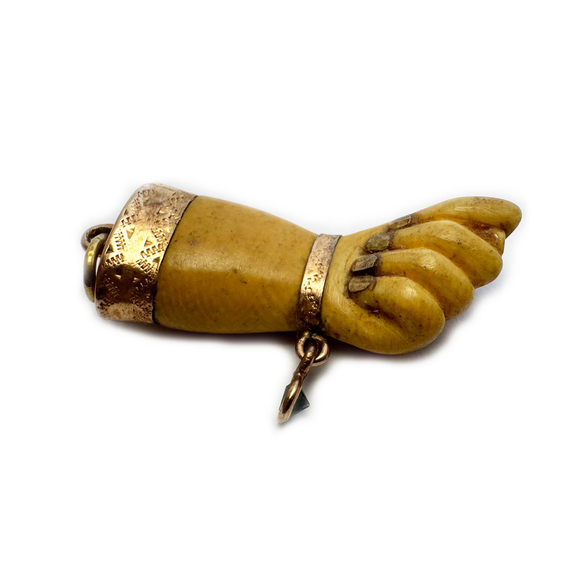 Antique 14k Gold Figa Pendant, Victorian Bone Charm, 1800s Mano Fico Amulet, Evil Eye Talisman, 14ct Gold Hand Charm, Georgian Jewelry