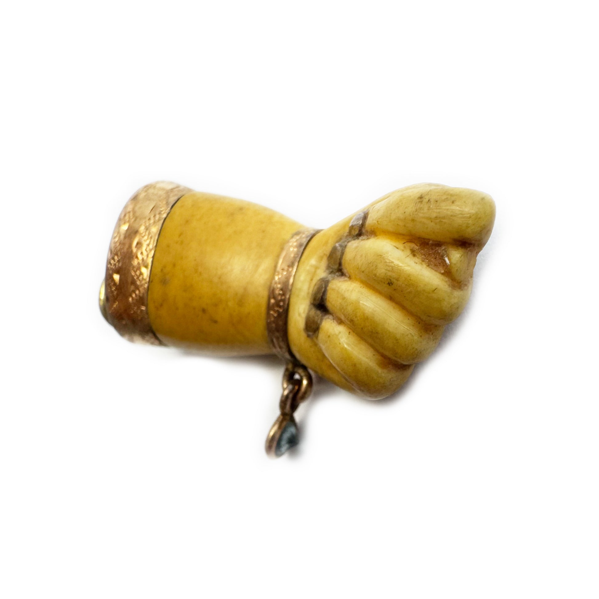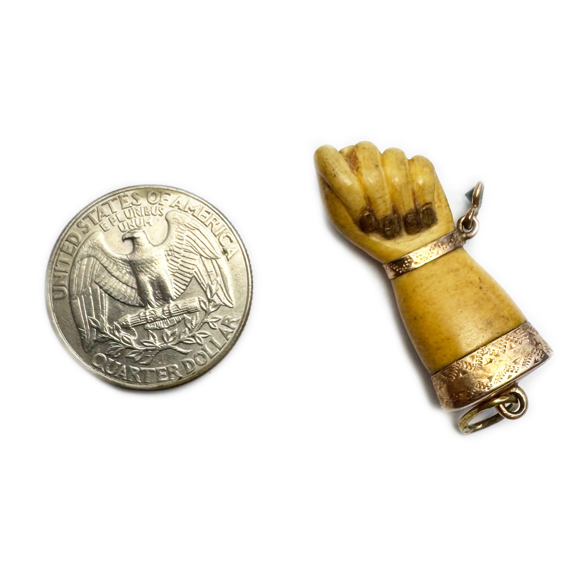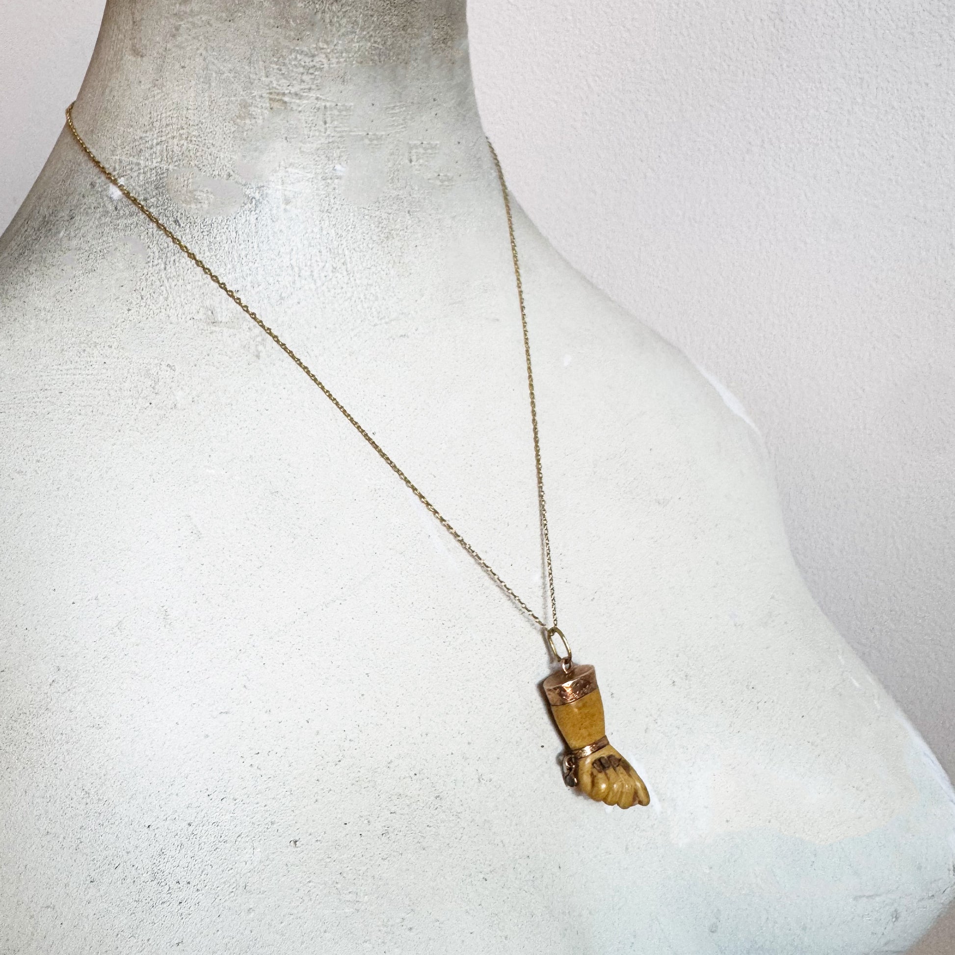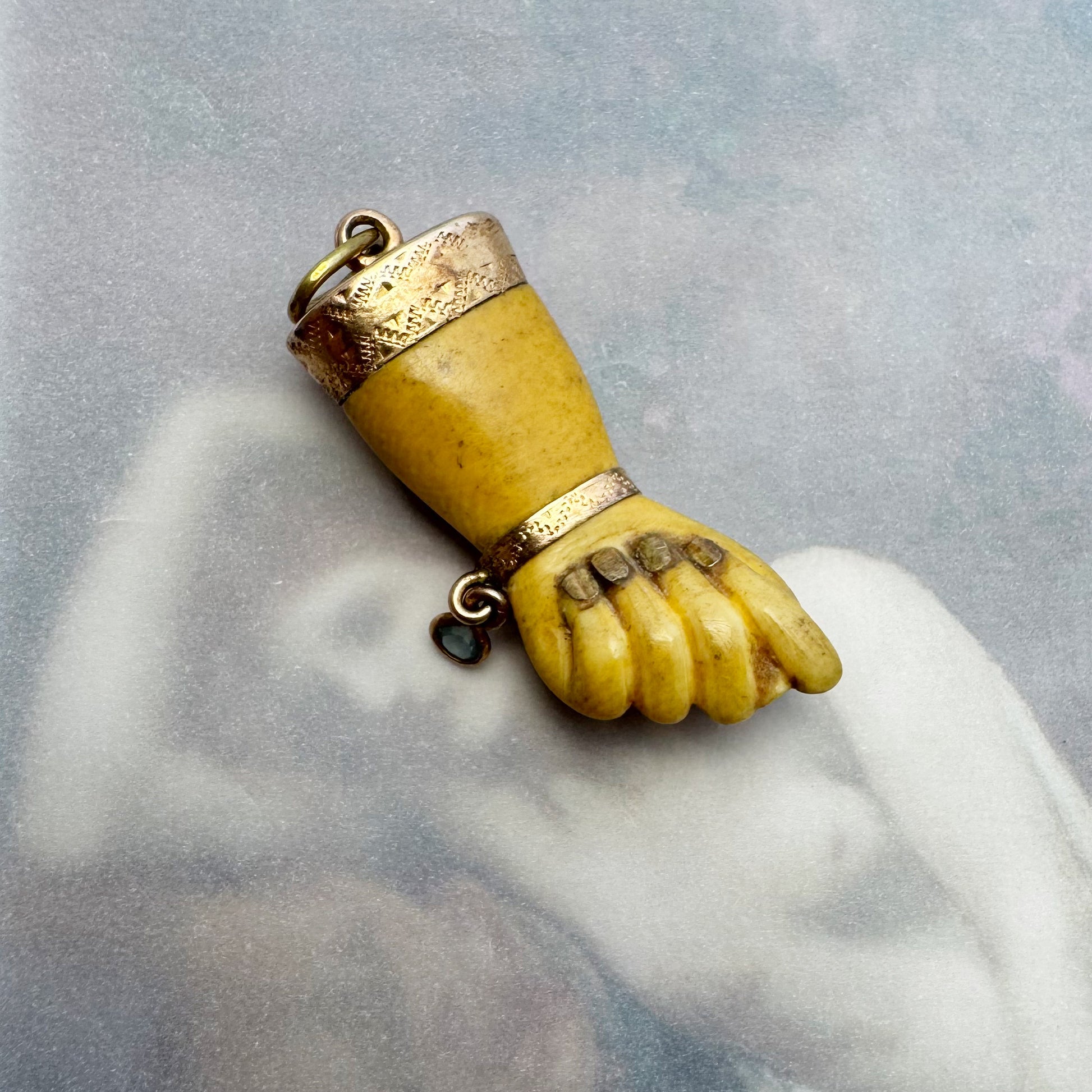 Antique 14k Gold Figa Pendant, Victorian Bone Charm, 1800s Mano Fico Amulet, Evil Eye Talisman, 14ct Gold Hand Charm, Georgian Jewelry