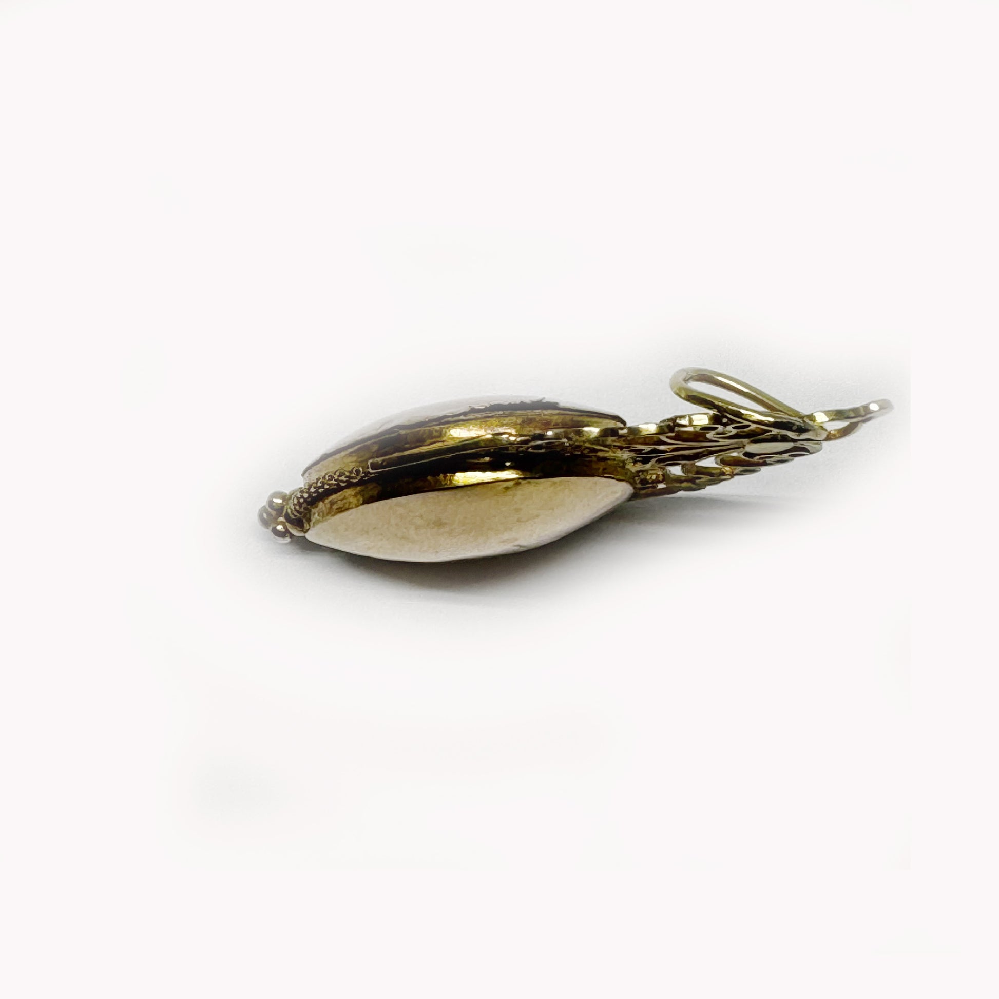 Marvellous and very rare Victorian reliquary crafted in Portuguese 14k gold, displaying a beautiful antique gold tone with subtle warm hues that shift gently between yellow and soft rose depending on the light, a tone often found in older continental gold alloys and highly sought after today.