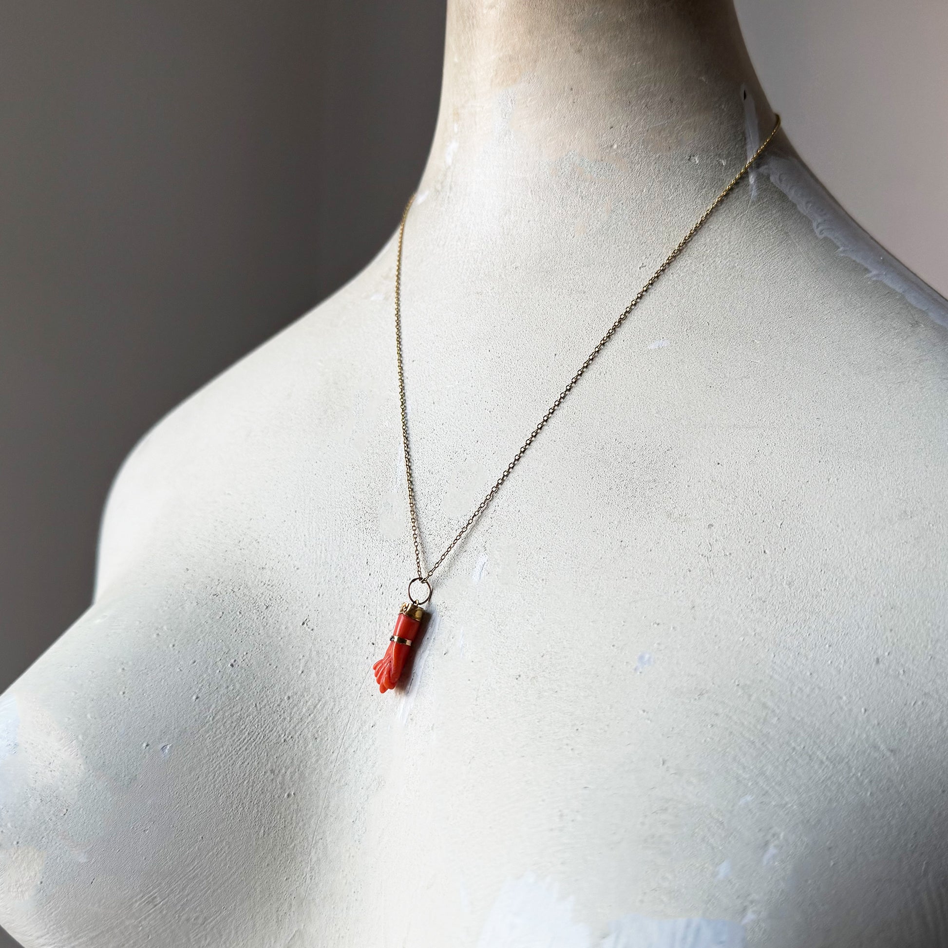 Adorable Victorian natural coral figa, mounted on a 18K solid gold case.