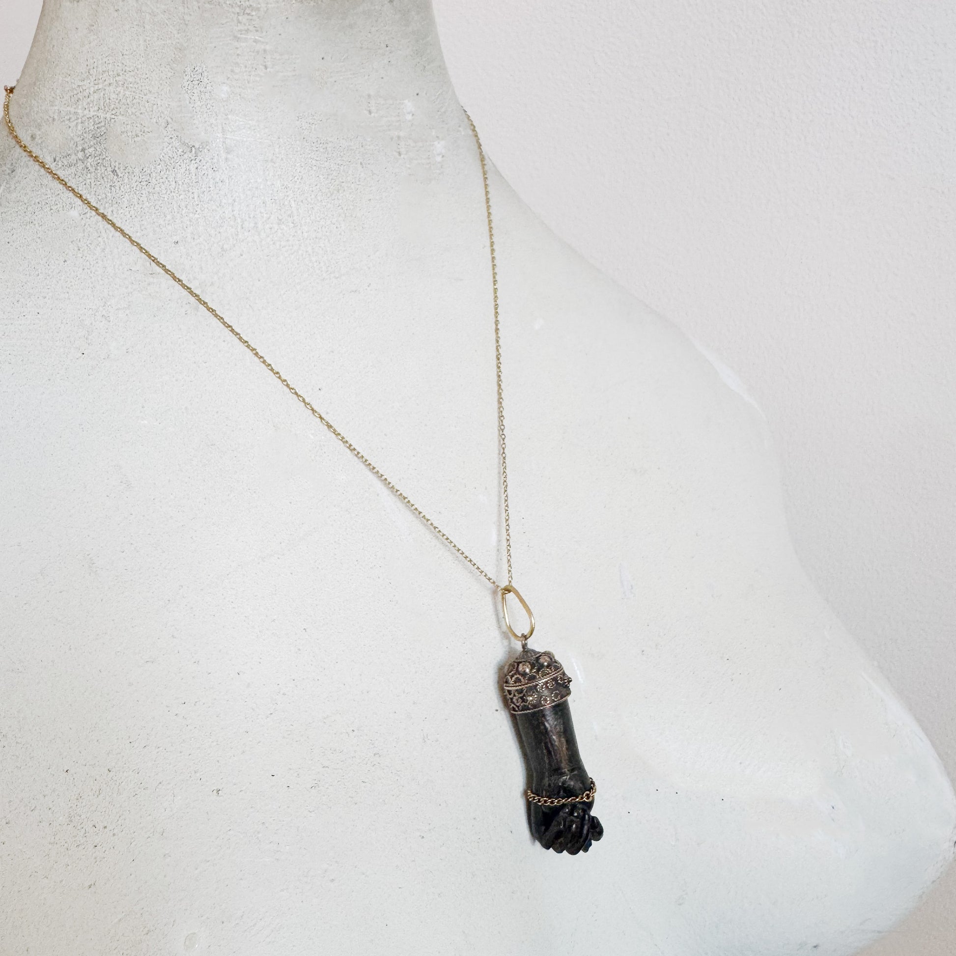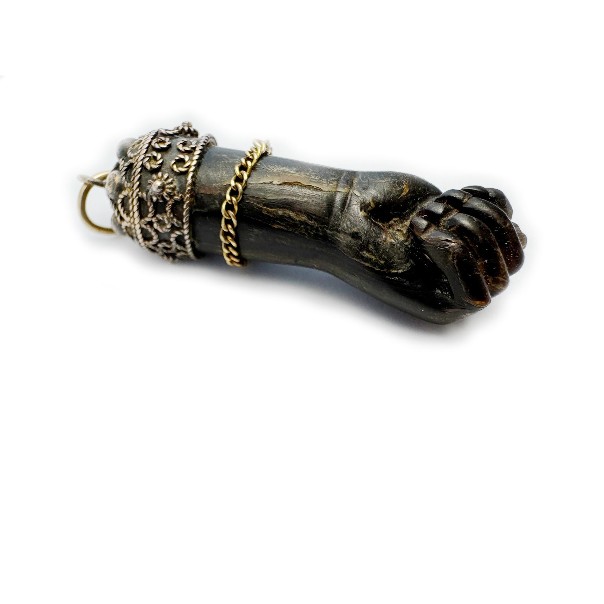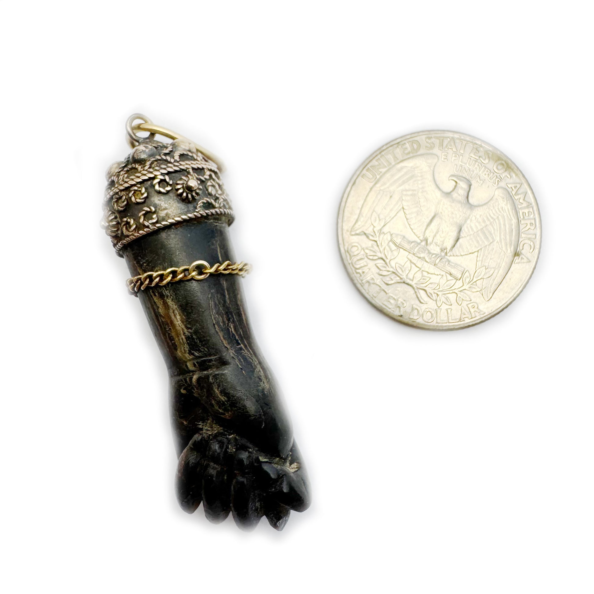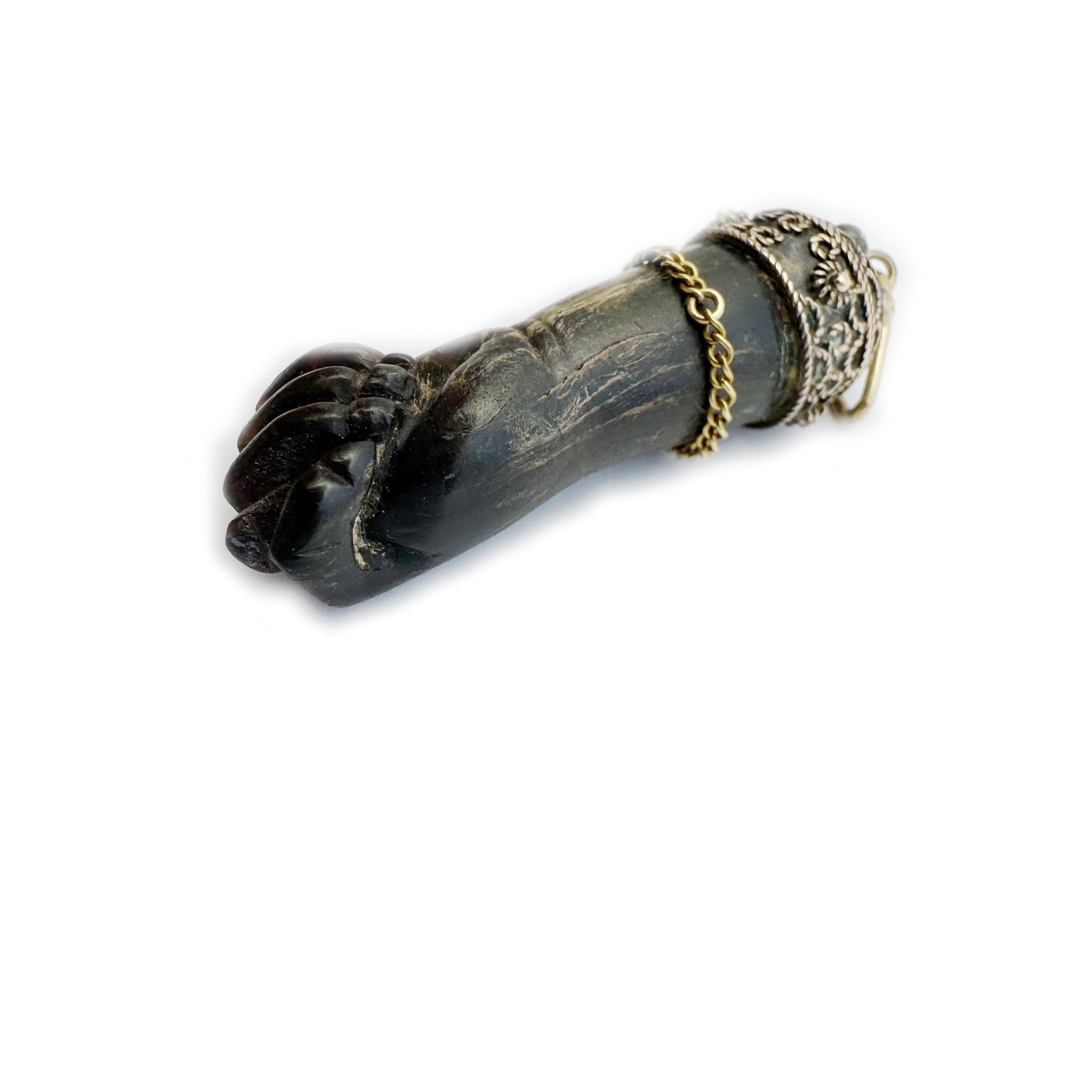 Antique 18k Figa Hand, Victorian Stained Horn Pendant, Large Lucky Charm, 1800s Figa, Mano Fico, Figa Charm, Amulet, Hand Charm, Evil Eye