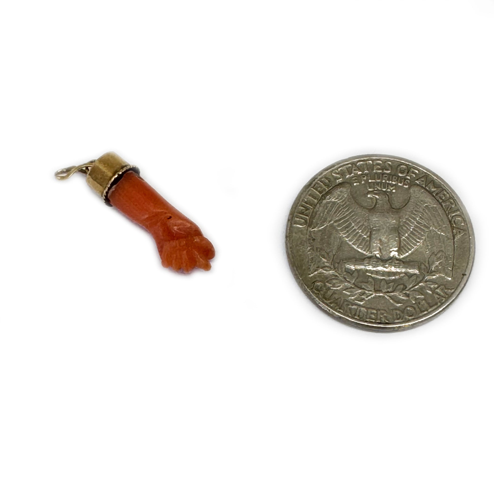 Antique 18k Gold Coral Figa Charm, Victorian Mediterranean Coral Mano Fico, 18ct Gold Lucky Hand Pendant, Evil Eye Protection Amulet