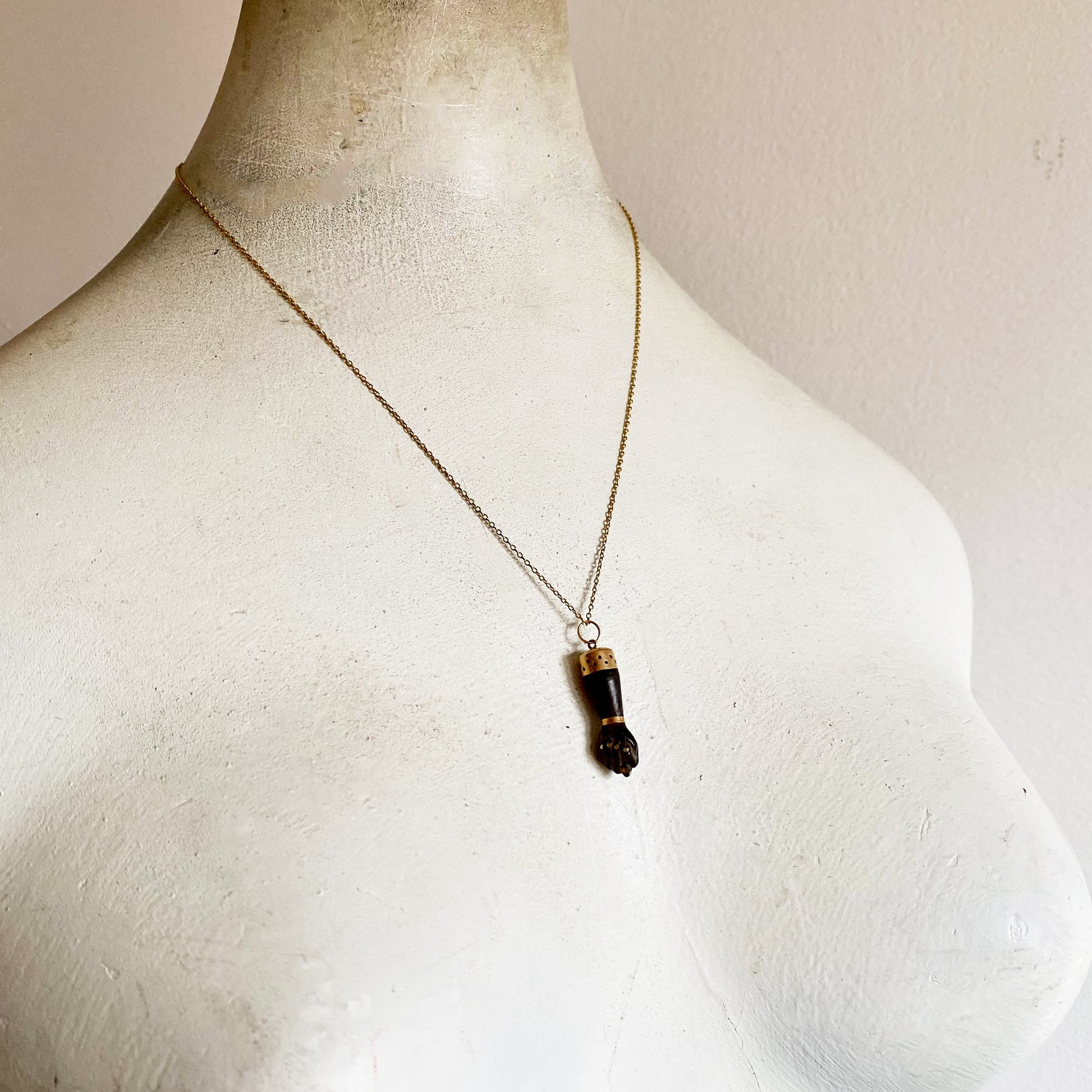 Antique 18k Gold Figa Hand, Victorian Stained Horn Pendant, Lucky Charm, 1800s, Mano Fico, Figa Charm, Hand Charm, Evil Eye, Hand Jewelry