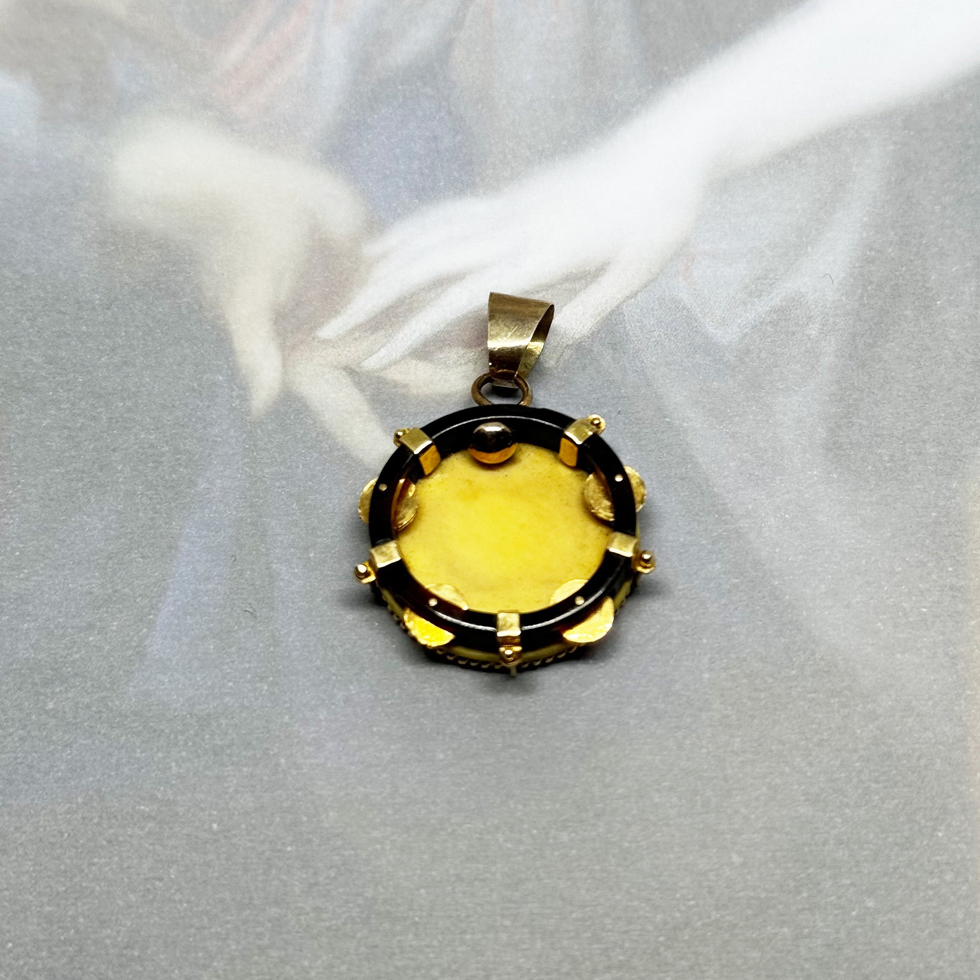 Antique 9k Gold Tambourine Charm Pendant, 9ct Gold Bone Stained Horn Musical Instrument, Hand Drum, Musical Charm, Late 1800s, One of a Kind