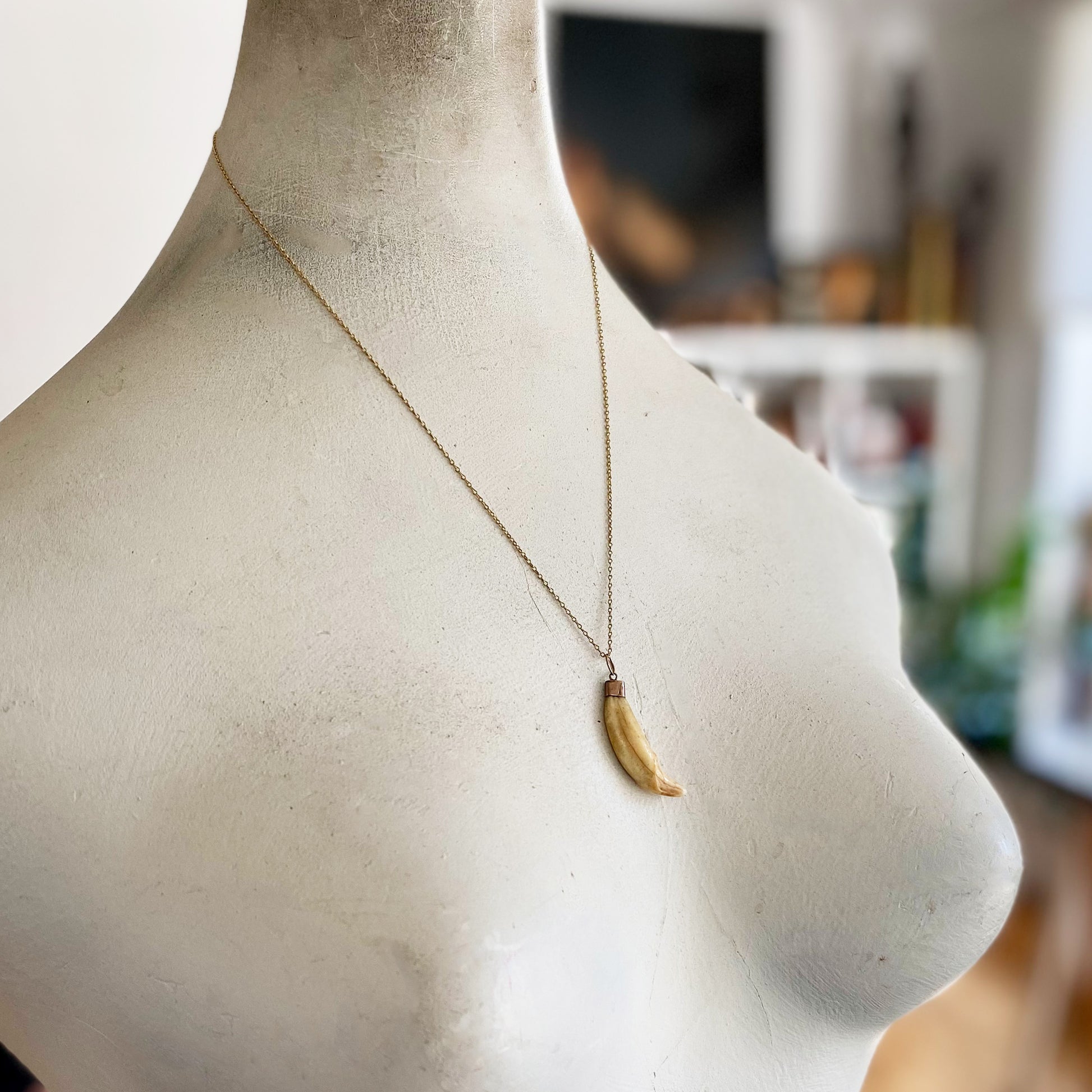 Antique 9k Gold Tooth Amulet, Victorian Animal Pendant