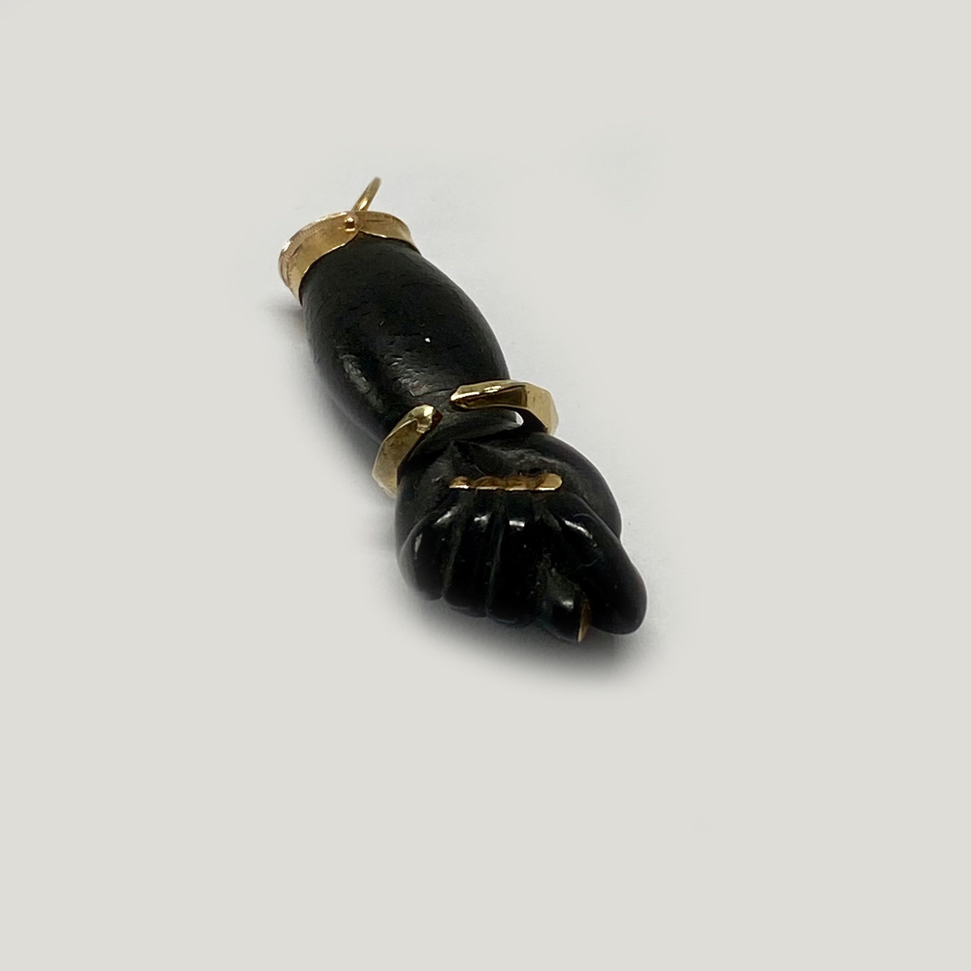 The figa measures approximately 4.3 cm long (including bail) by 1.3 cm wide, and it weighs approximately 3 grams.