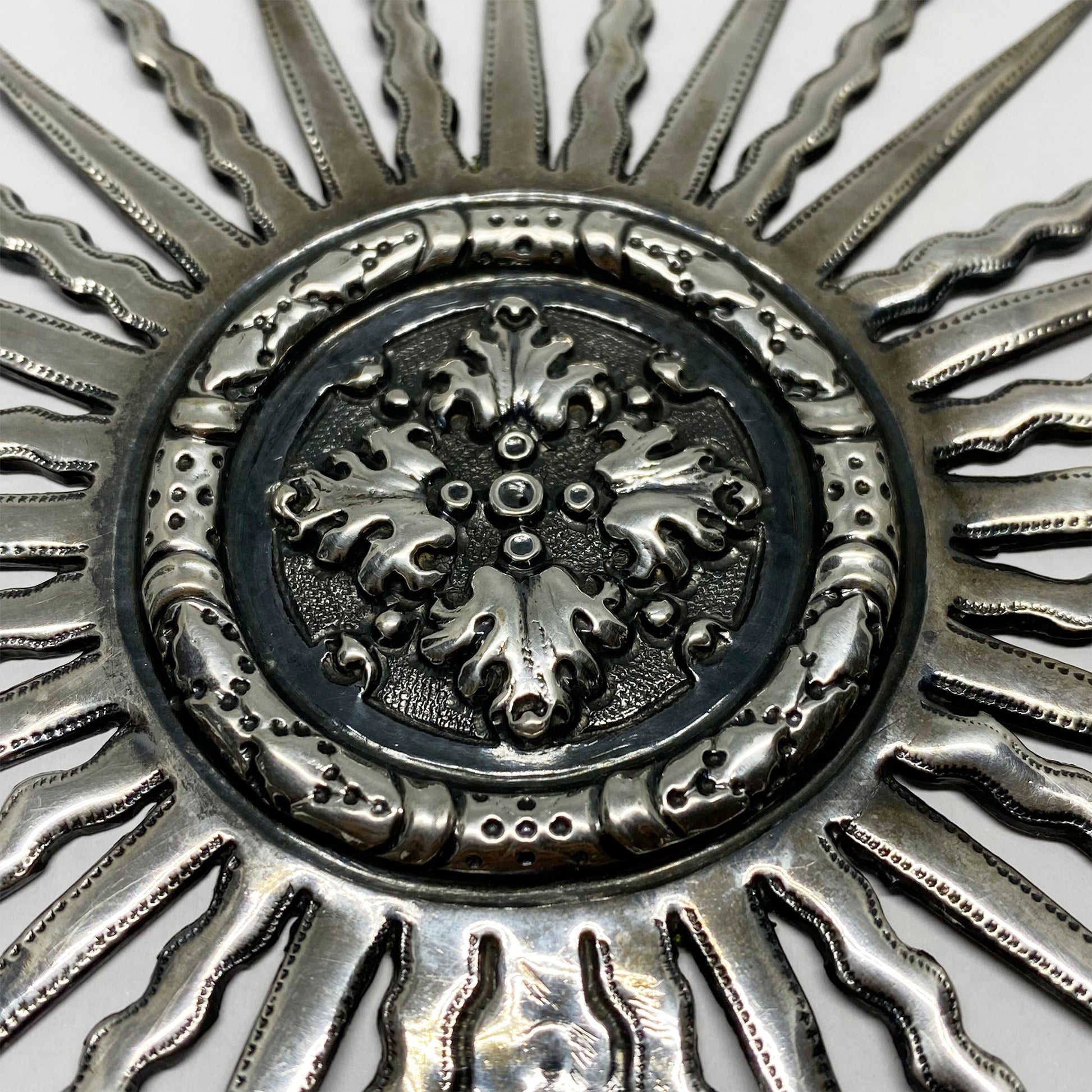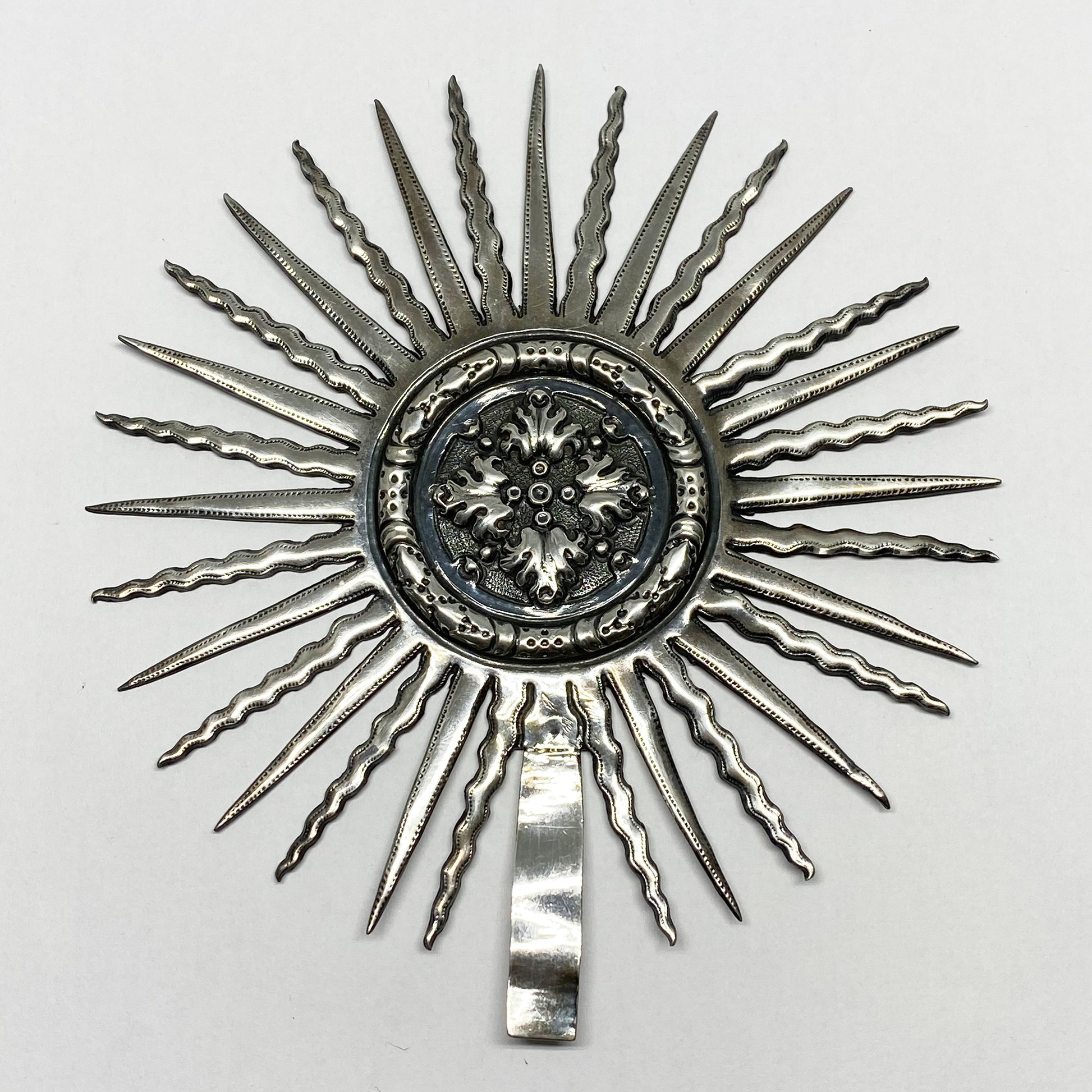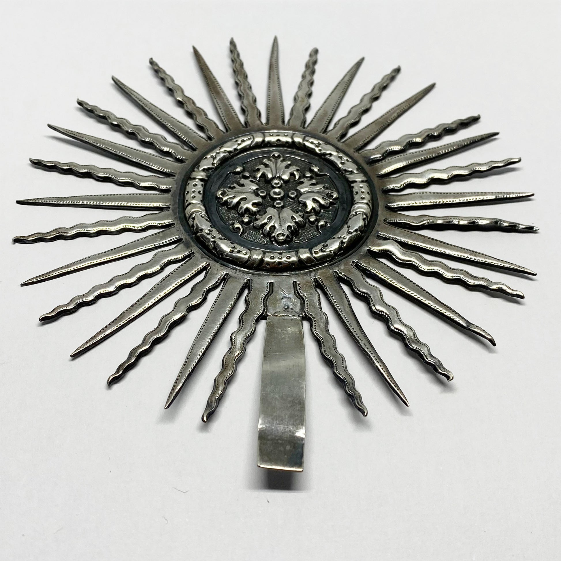 A Portuguese/Spanish silver altar figure crown, this delightful 19th century antique silver halo/crown was made to be worn over the head of a santo or saint figure.