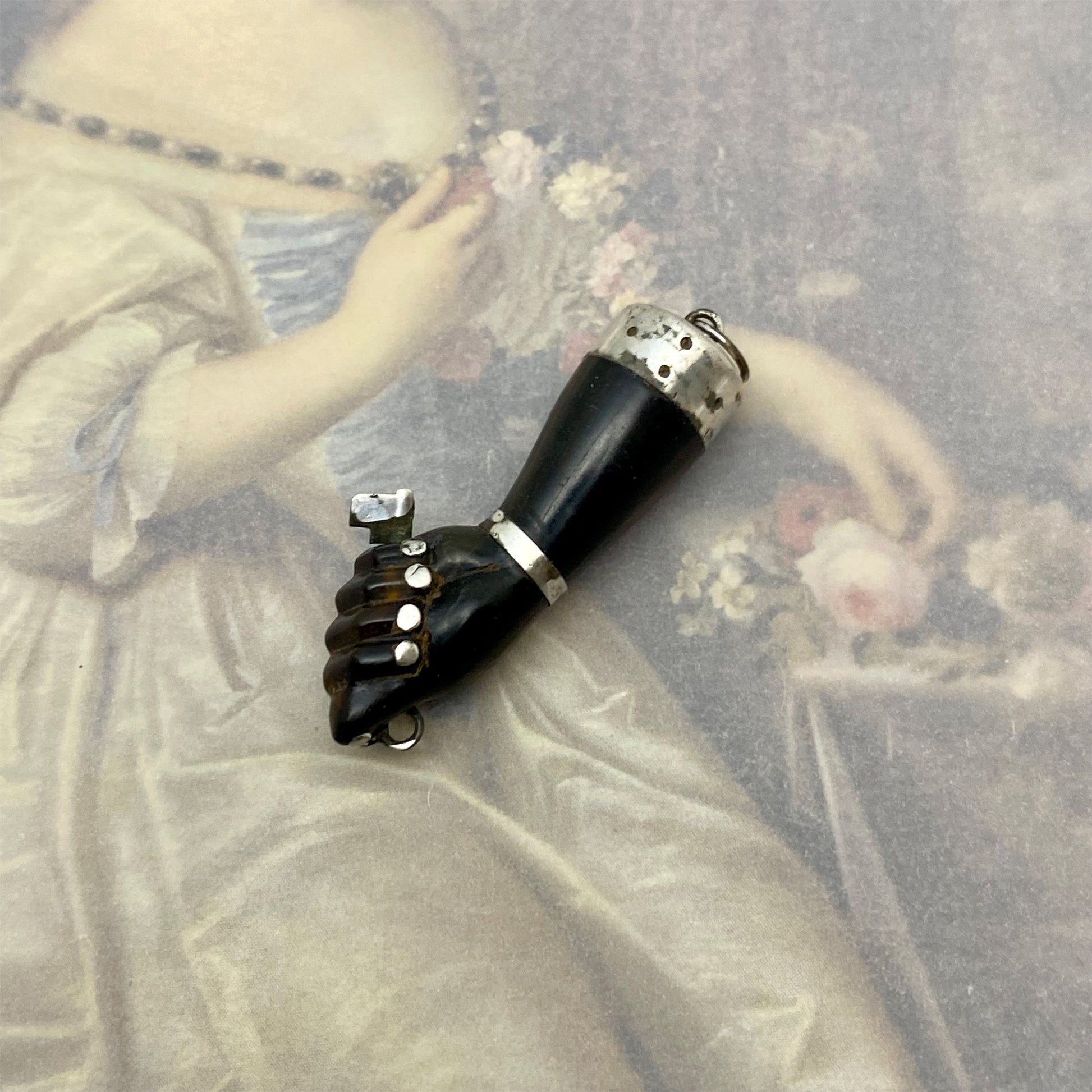 Antique Stained Horn Fist, Silver Tone 1950's Figa, Amulet, Figa Charm, Pendant, Talisman, Mano Fico, Key Figa, Evil Eye, Mano Figa, Hand