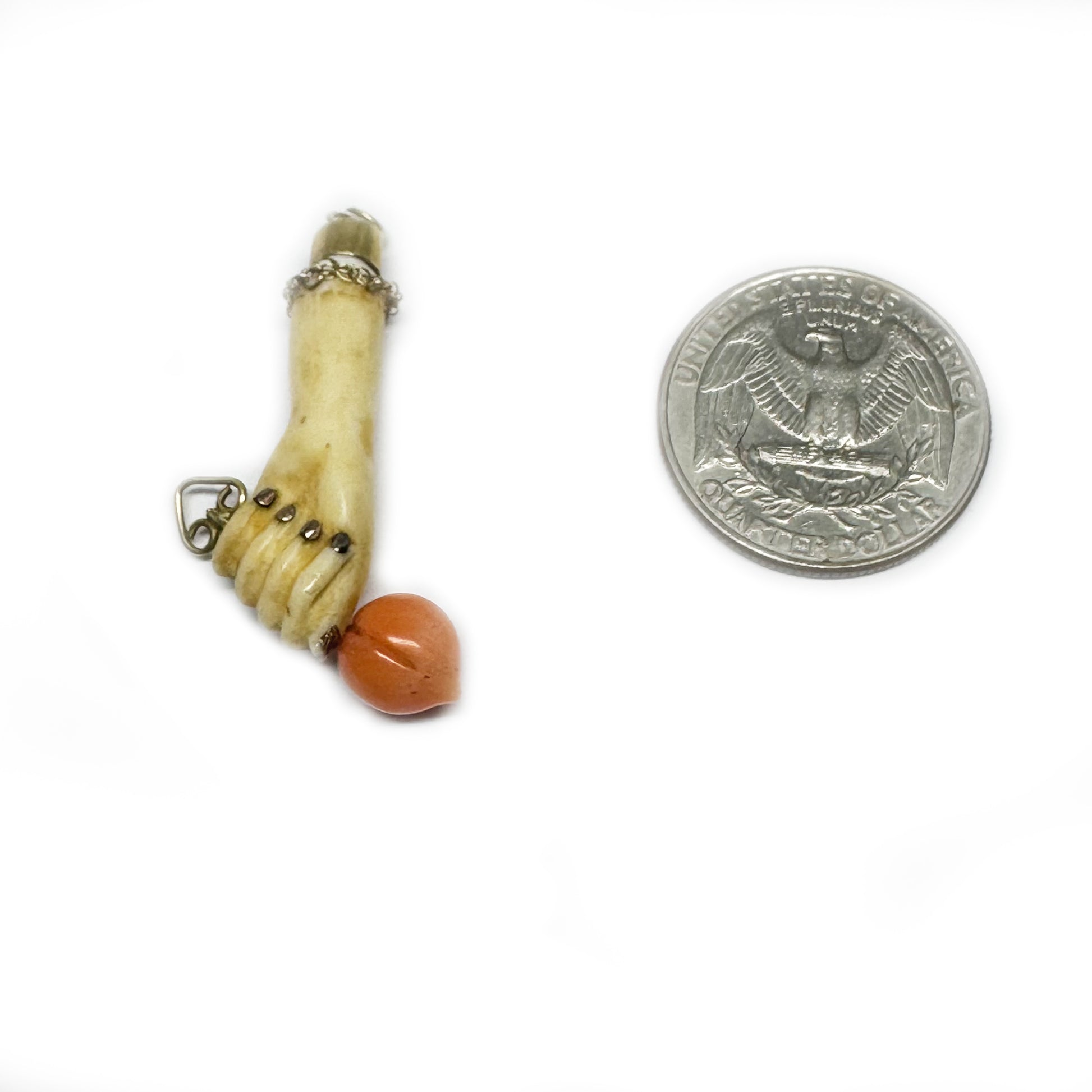 This pendant came from an Italian antique dealer, purchased together with four similar bone figas holding coral roses. Two have already been sold in my shop, and the fourth will be listed soon.