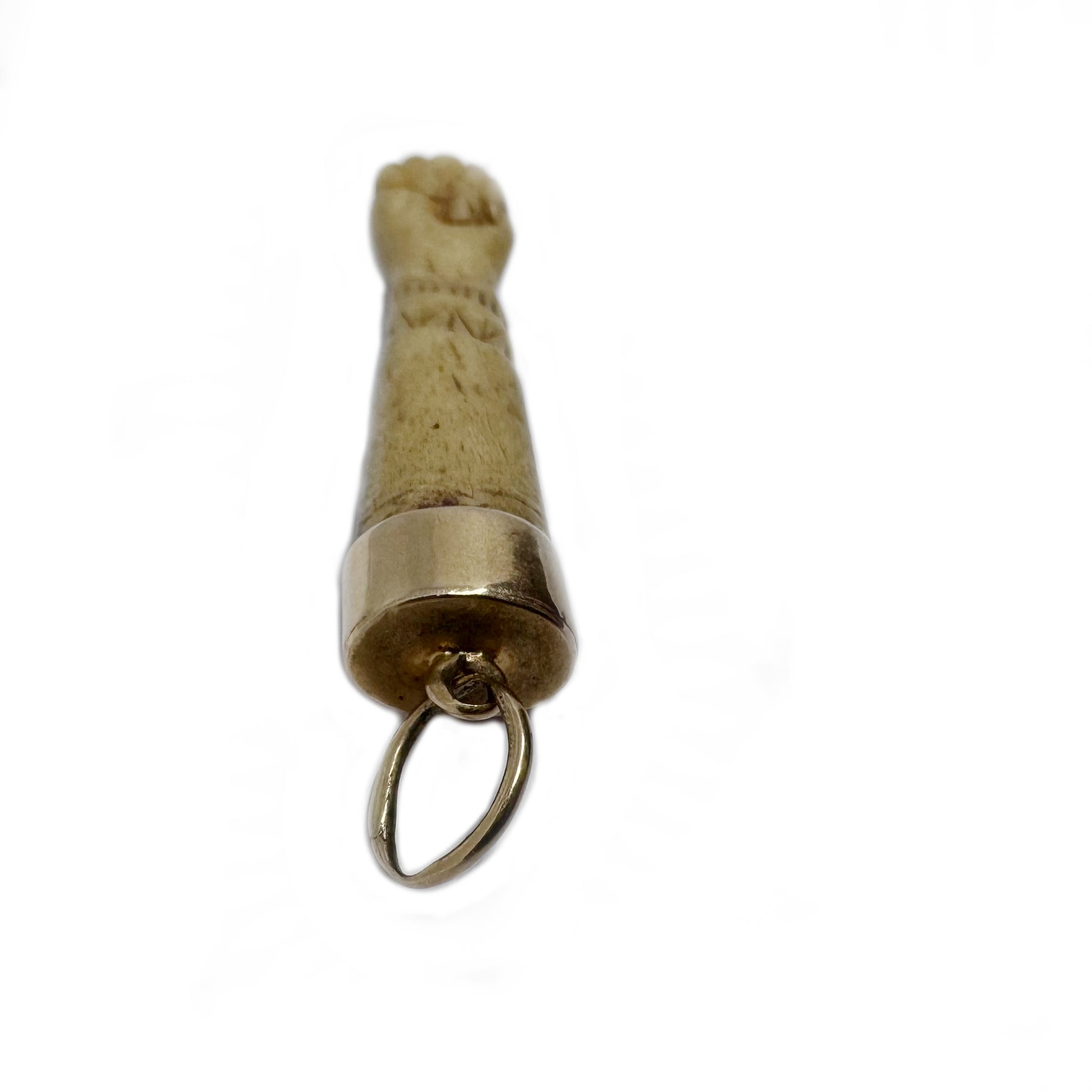 A rare antique Victorian figa pendant, featuring a hand-carved bone fist mounted in an 18k gold cap and bail. (Acid tested positive as 18k gold).