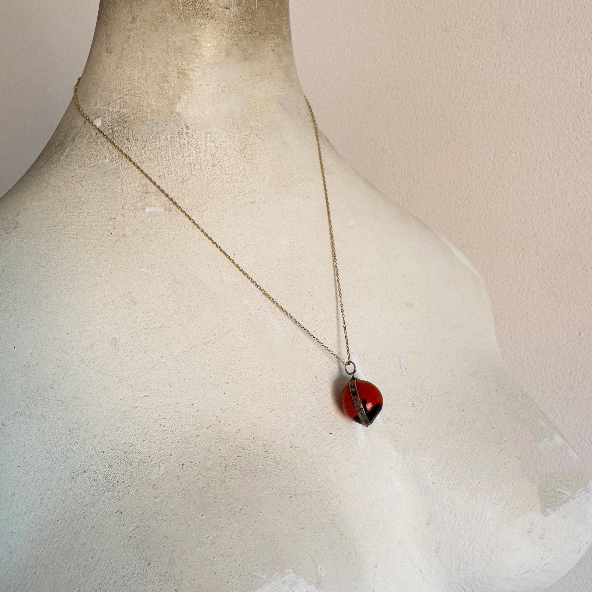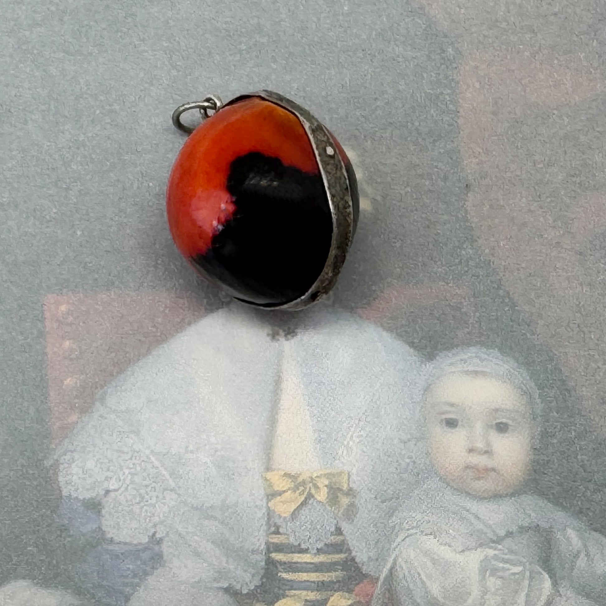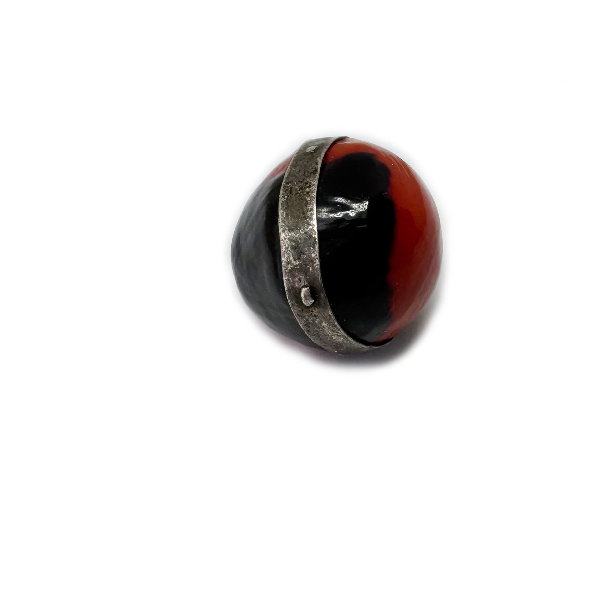 A rare and tactile antique charm made from a natural Wairuru seed, also known as Crab’s Eye or Sailor’s Valentine. These seeds originate from the Brazilian and Peruvian Amazon..