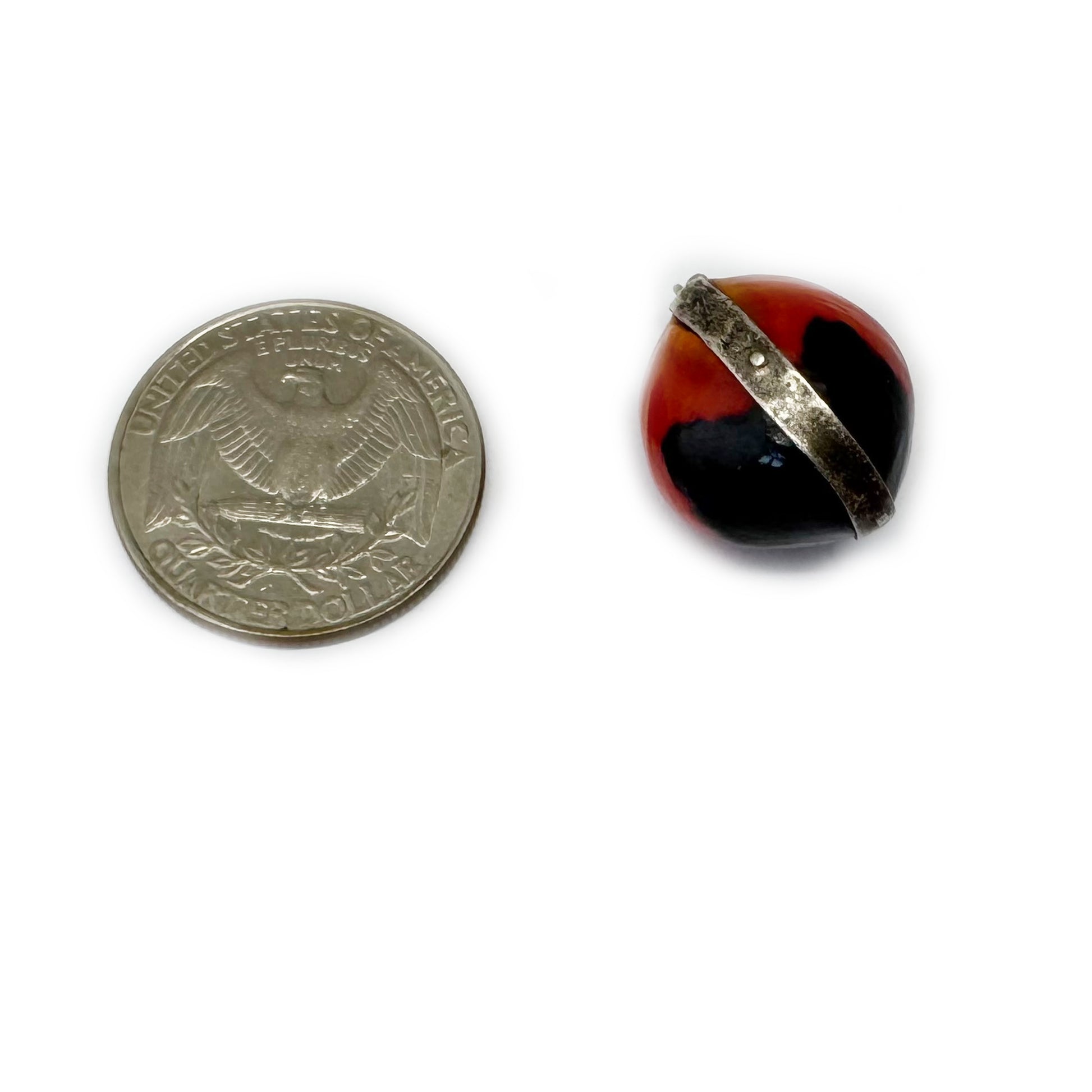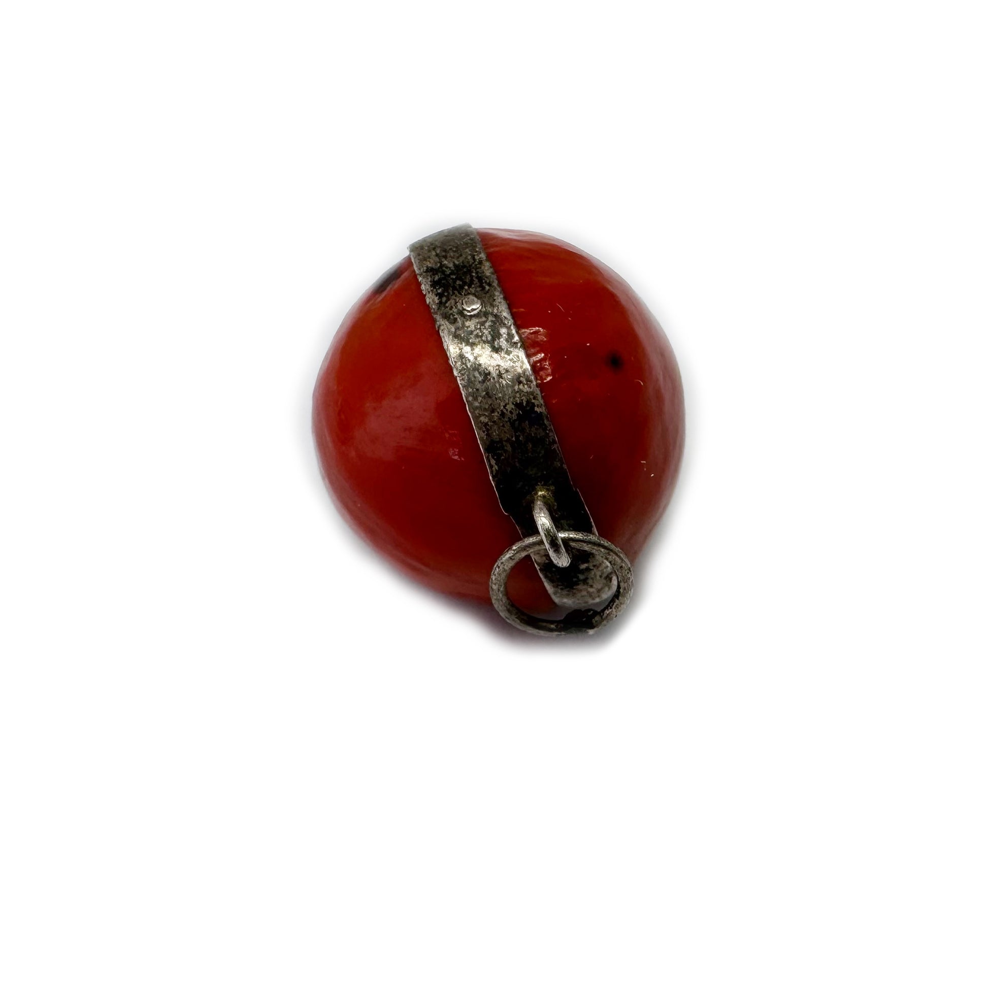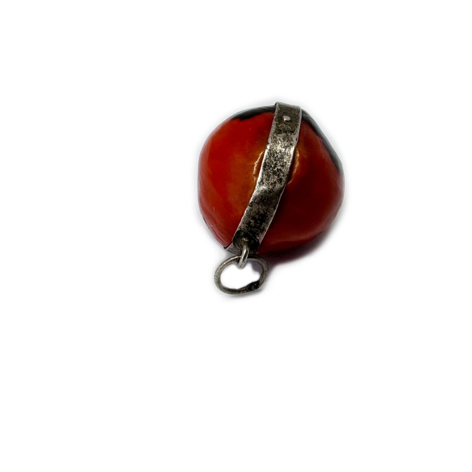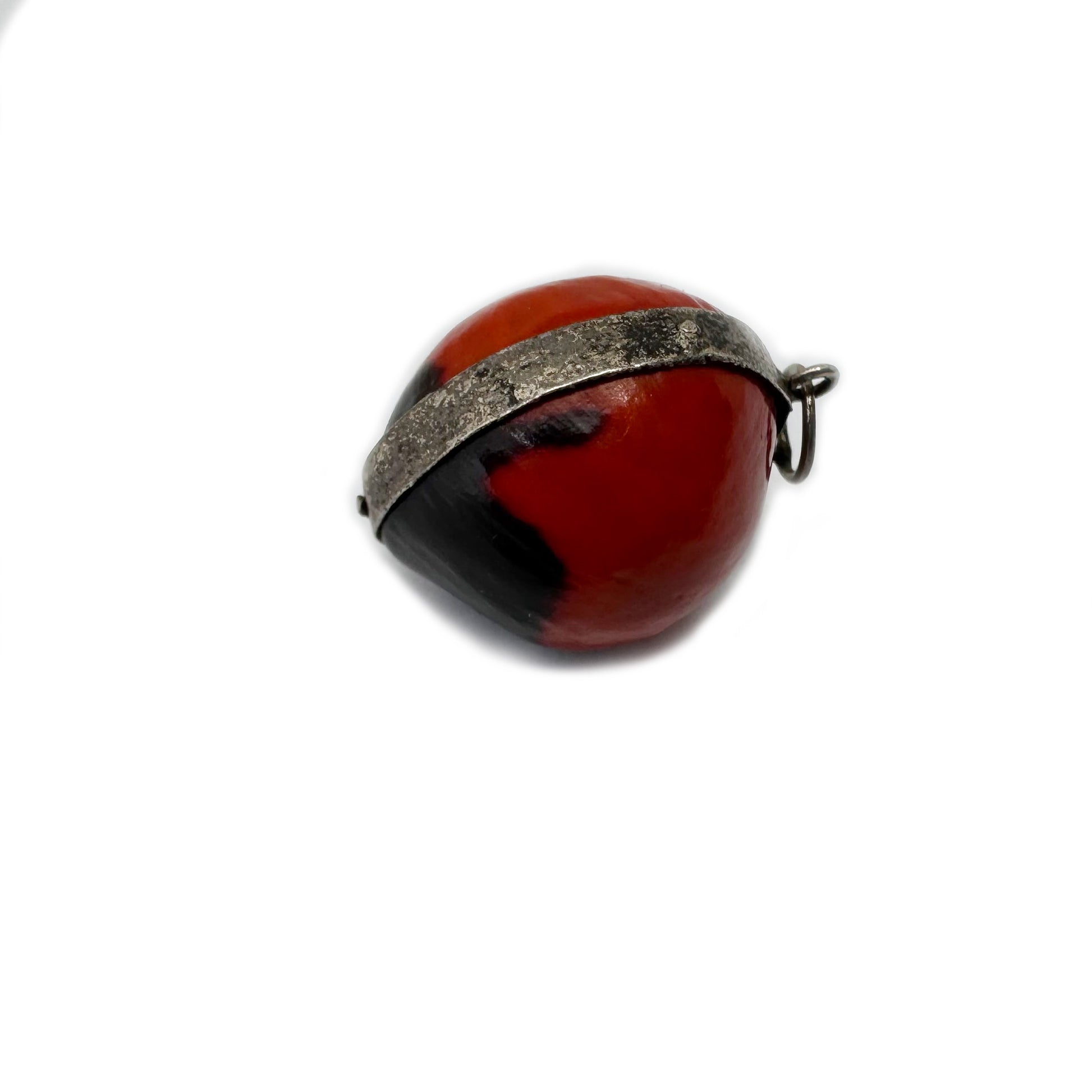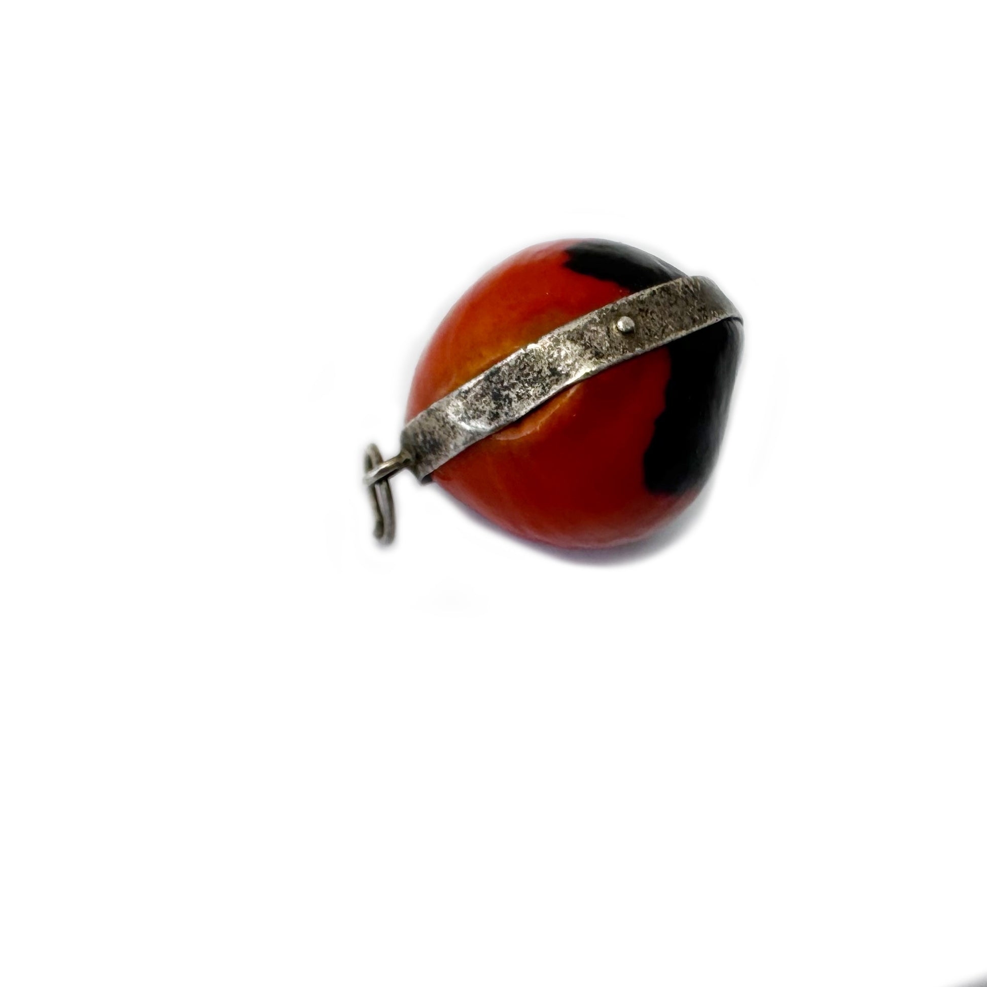 Rare Antique Silver Peruvian Wairuru Seed Charm, 1800s Pendant Good Luck Amulet, Crab Eye, Sailors Valentine, Victorian Lucky Seed