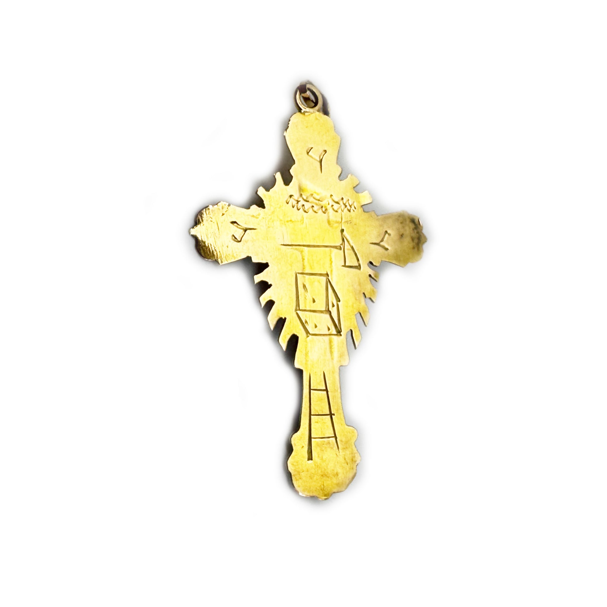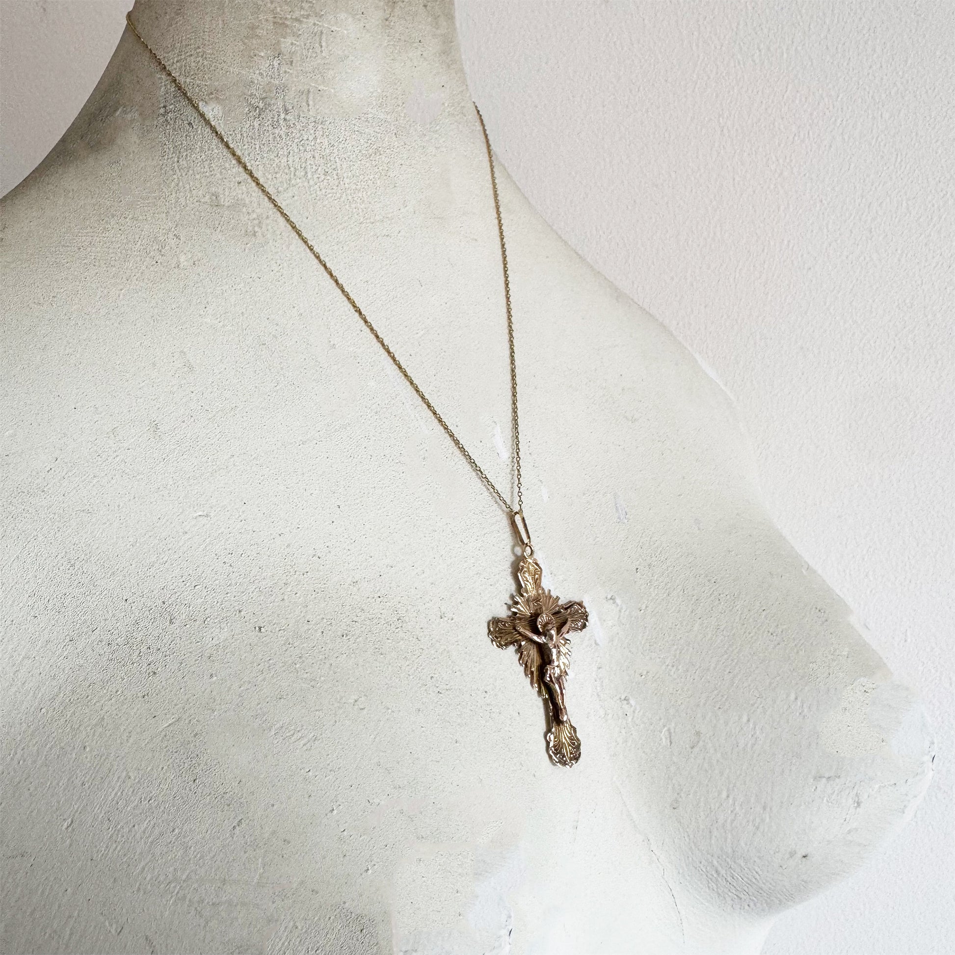 This striking 19th century 16k solid gold crucifix is a rare and meaningful piece of Victorian devotional jewellery.