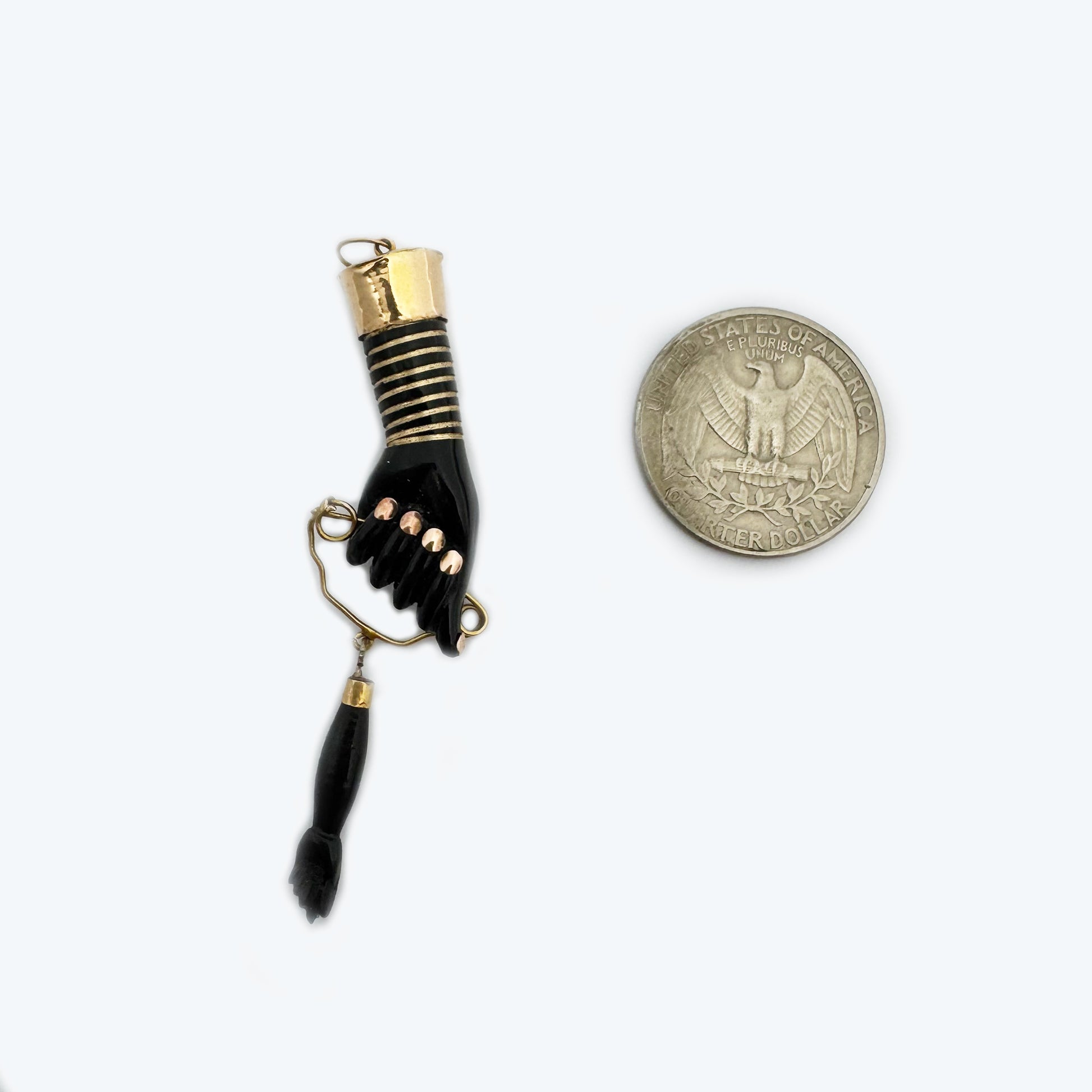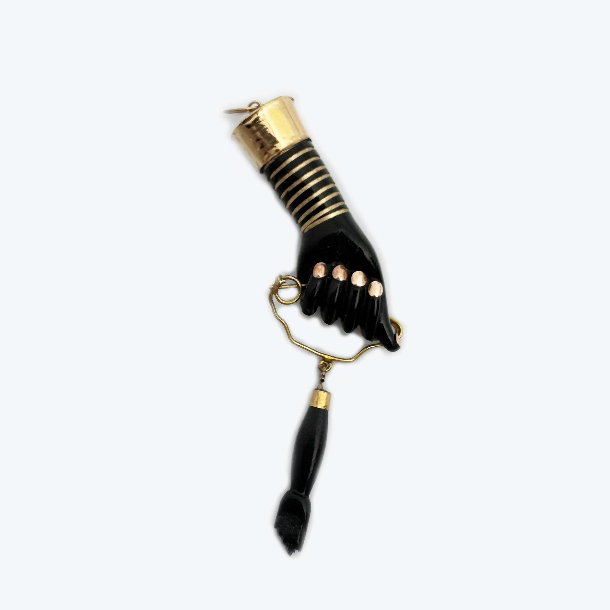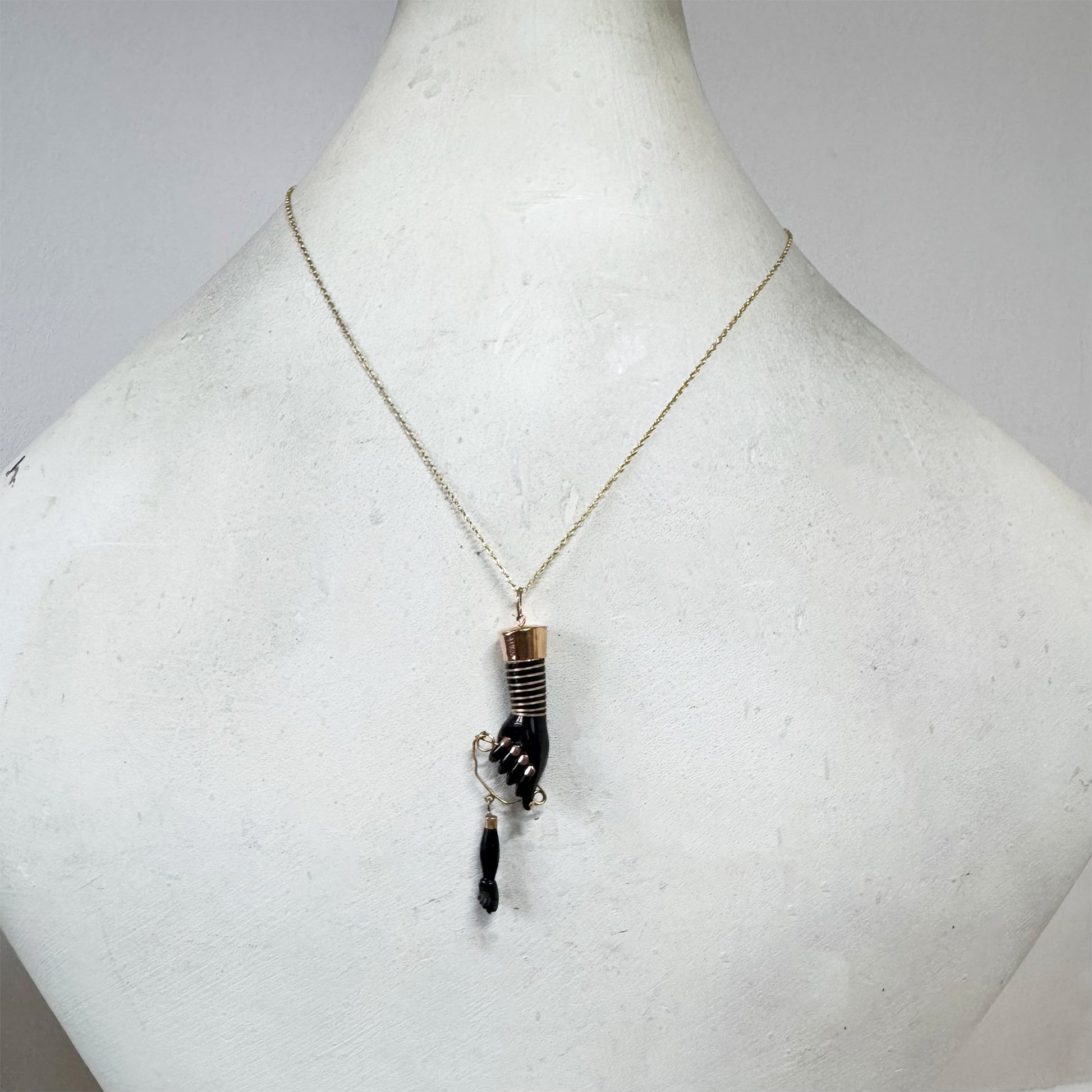 Vintage 14K Gold Black Resin Figa Hand Amulet, Evil Eye Charm