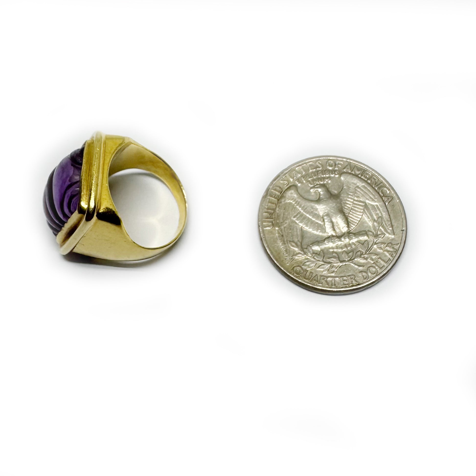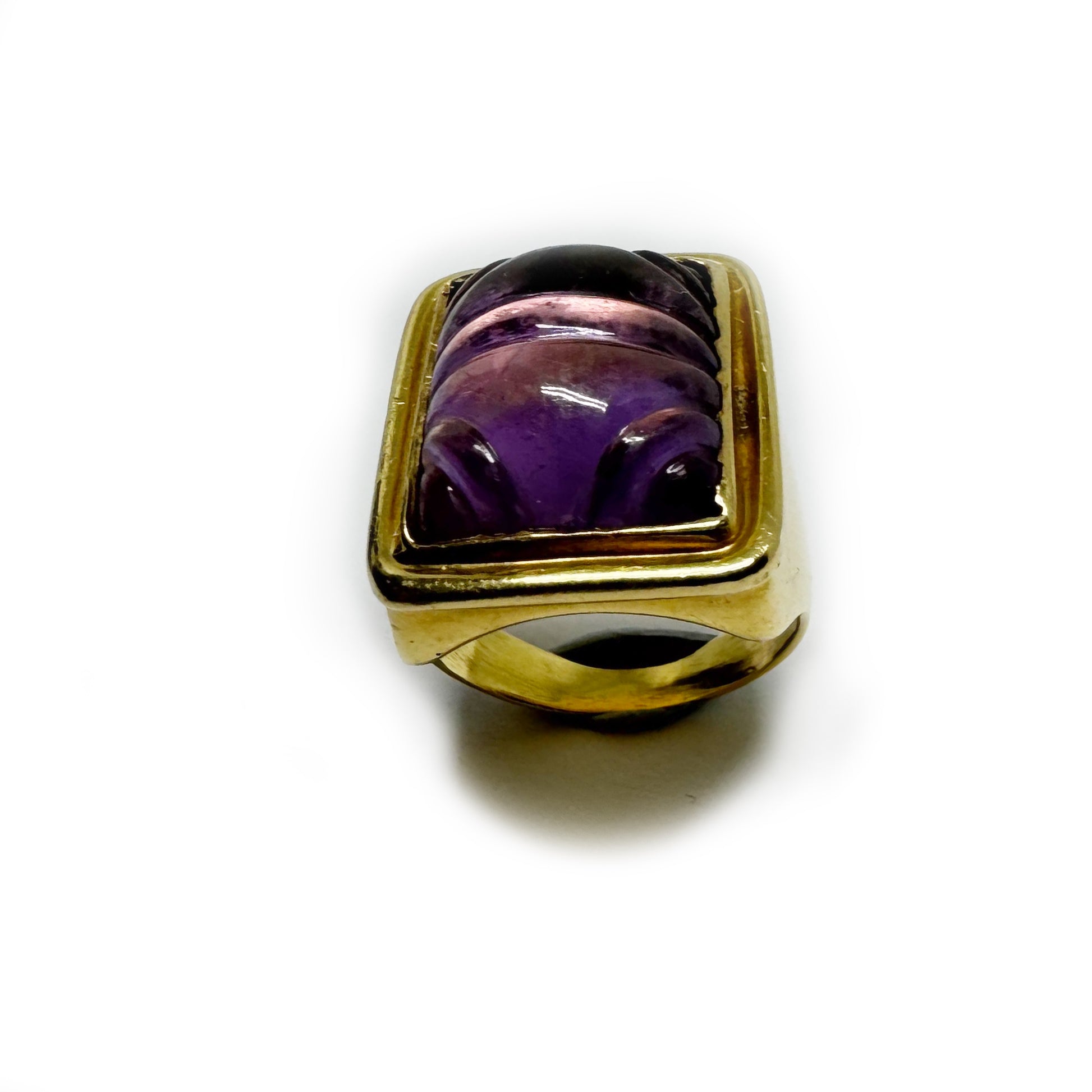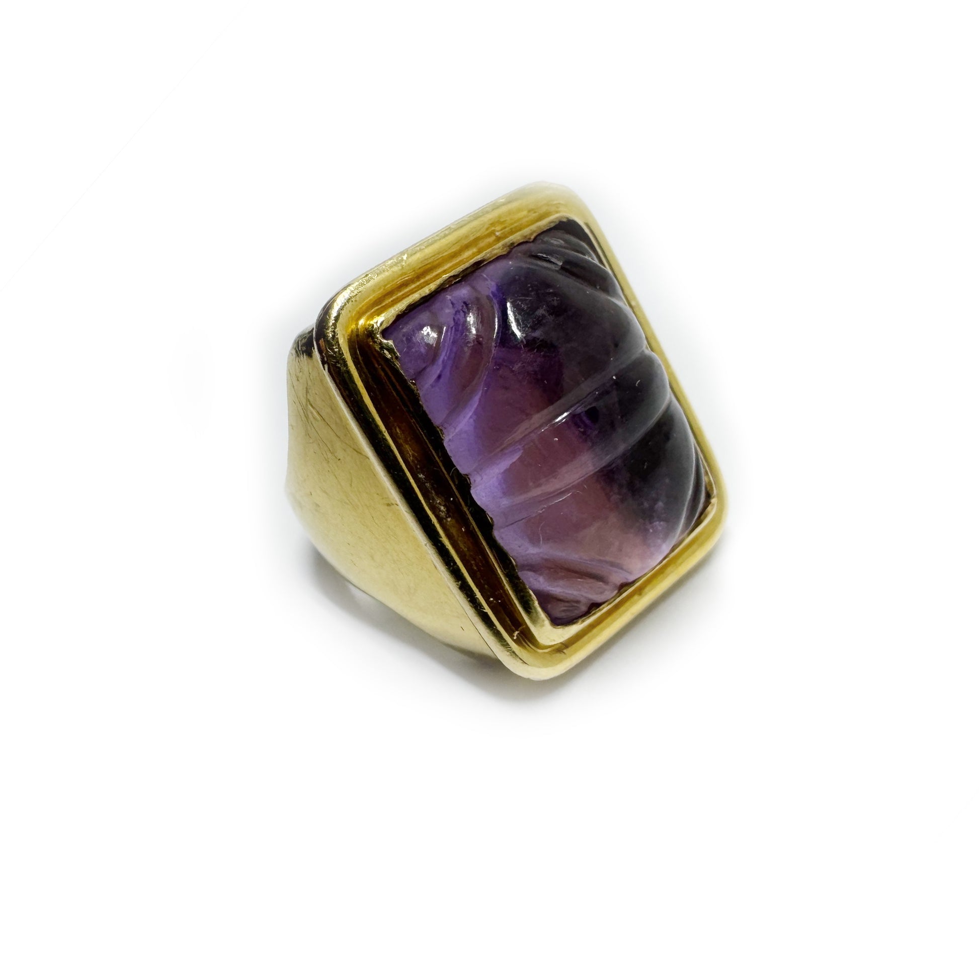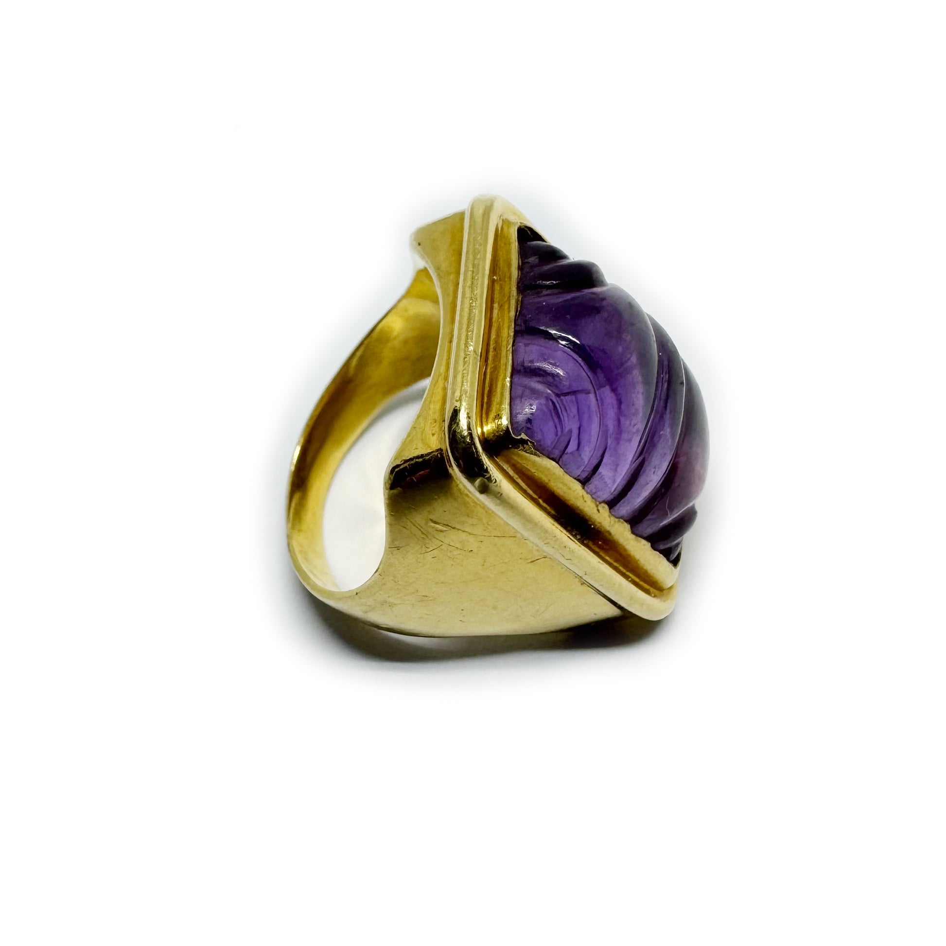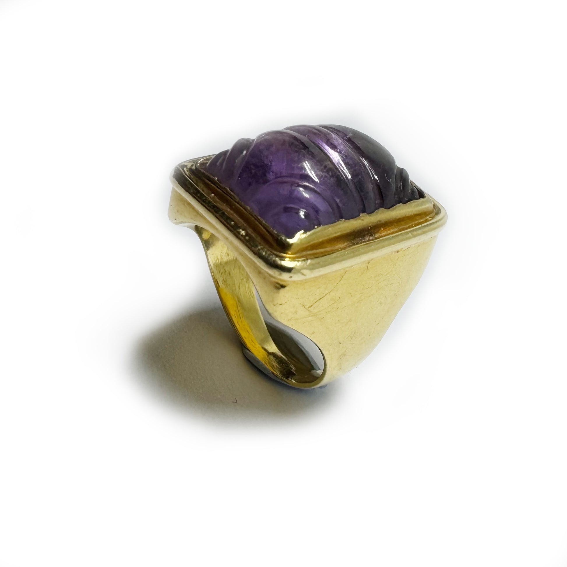Vintage 18k Gold Amethyst Ring, Midcentury Burle Marx Style, 1960s Carved Gold Ring, Brazilian 1950s Statement Jewellery 10.7 Grams