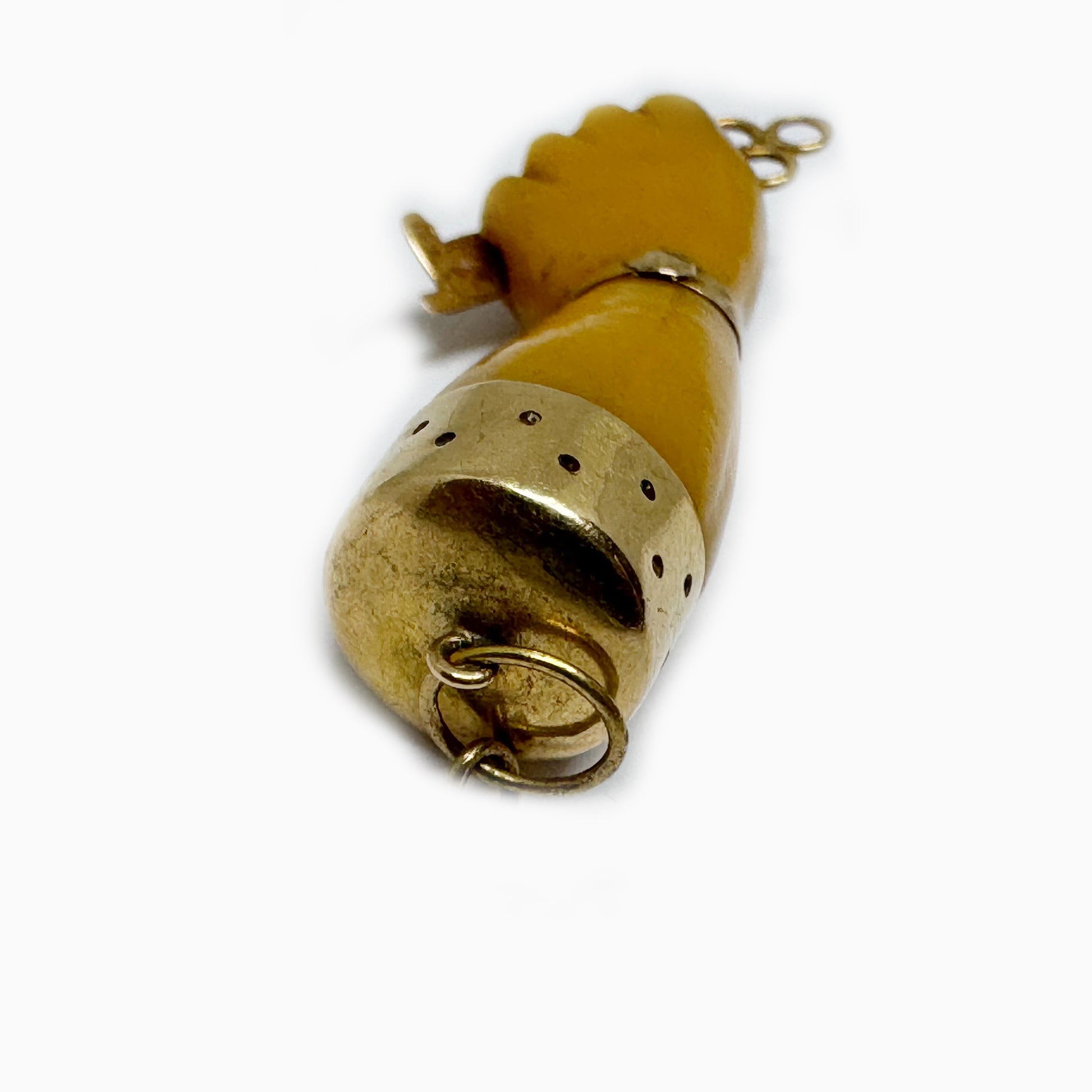 Vintage 18k Gold Hand Amulet Lucky Charm, 1960s Figa Mano Fico Pendant 18 ct Gold, Hand Amulet Lucky Charm, Bakelite Fist