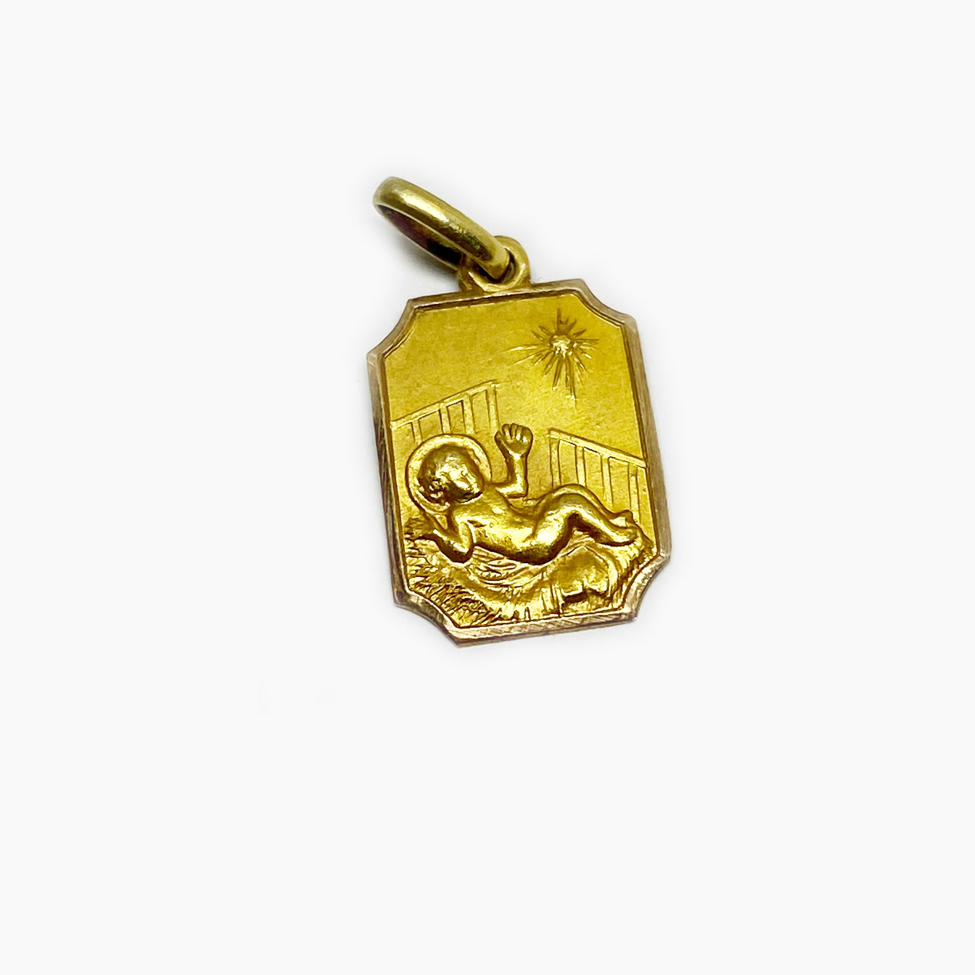 Vintage 9k Gold Religious Medal, Baby Crib Medal Pendant