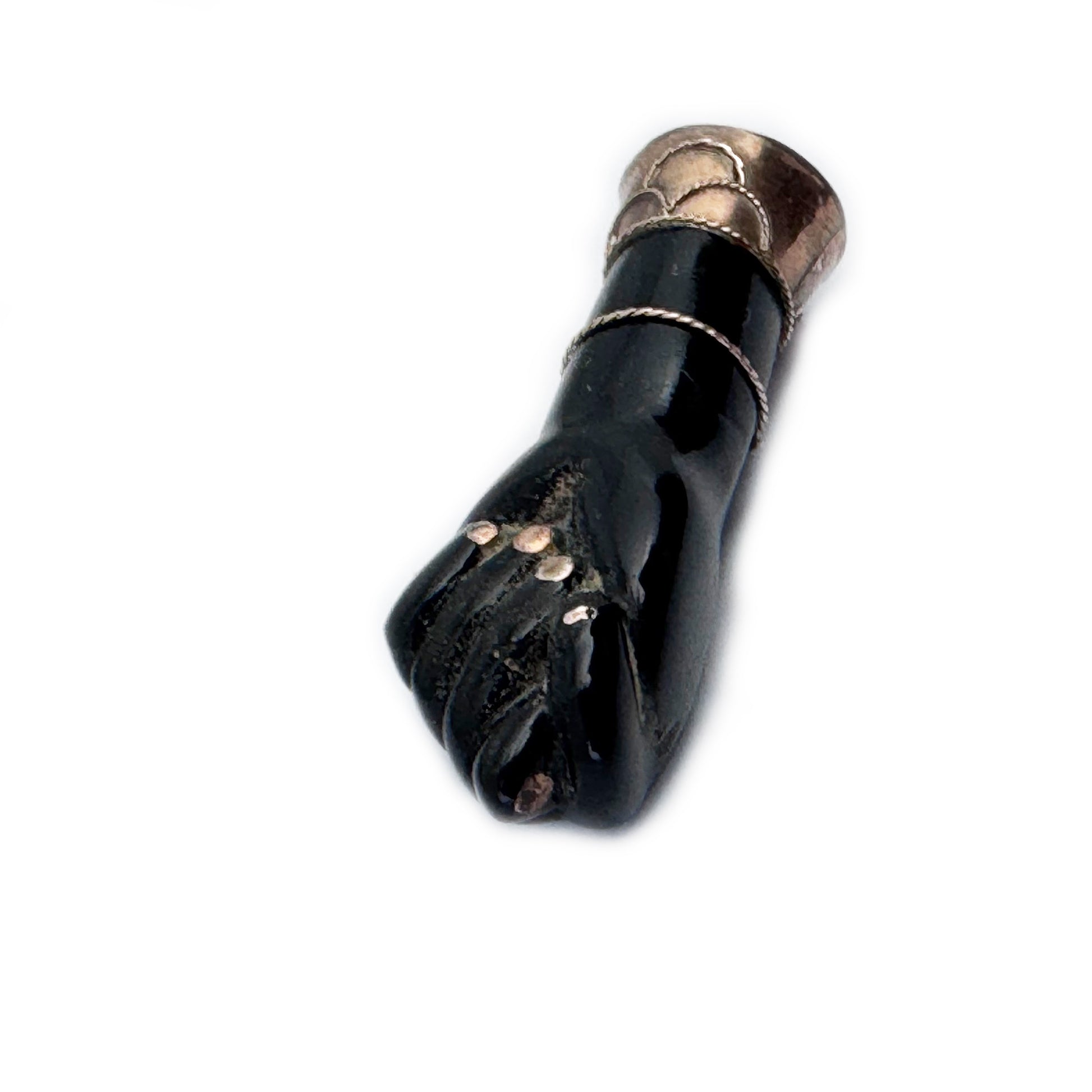 Vintage 9k Rose Gold Black Figa, 1940s Fist Talisman, Amulet, 9 ct Hand Pendant, Mano Fico, Figa Charm, Mano Figa, Evil eye