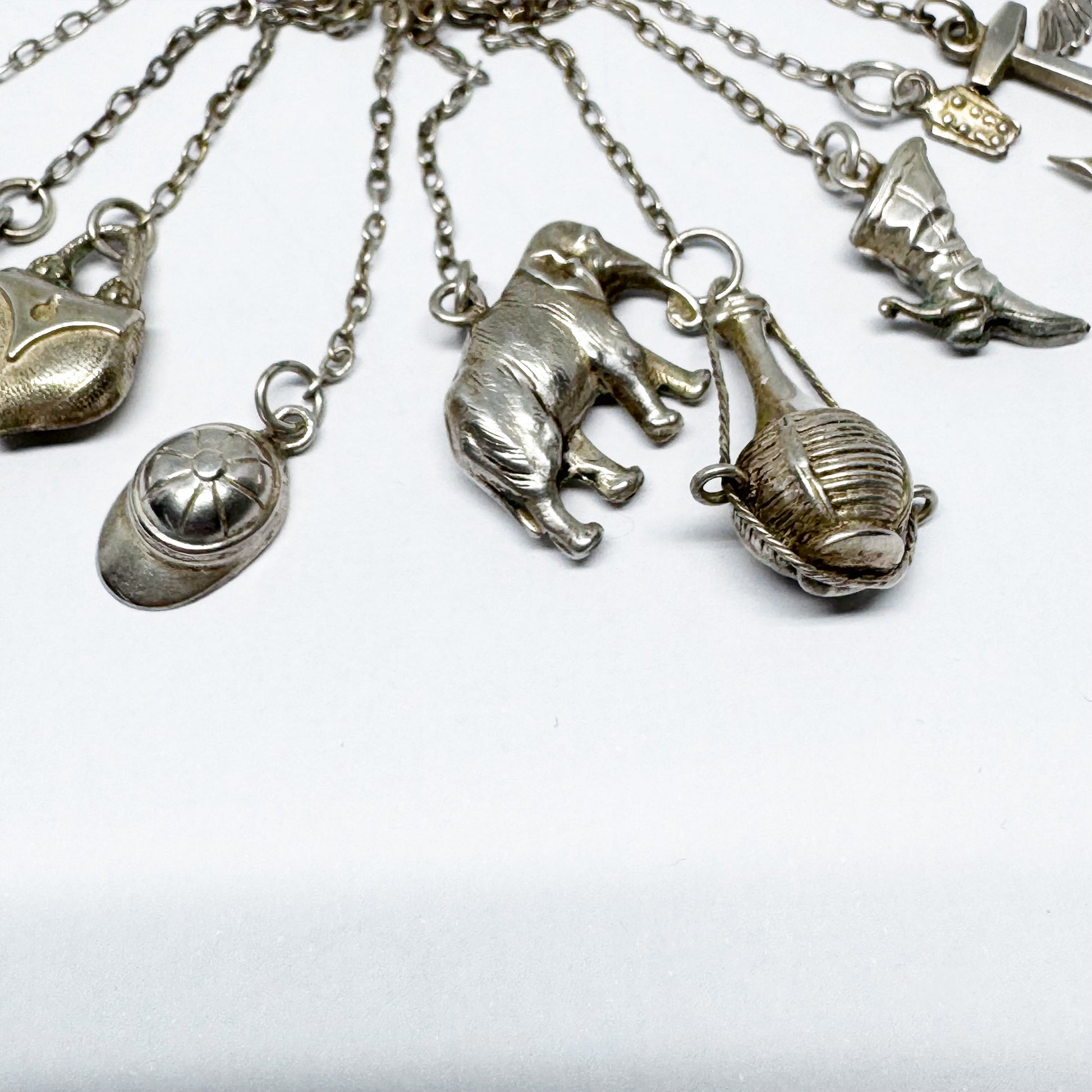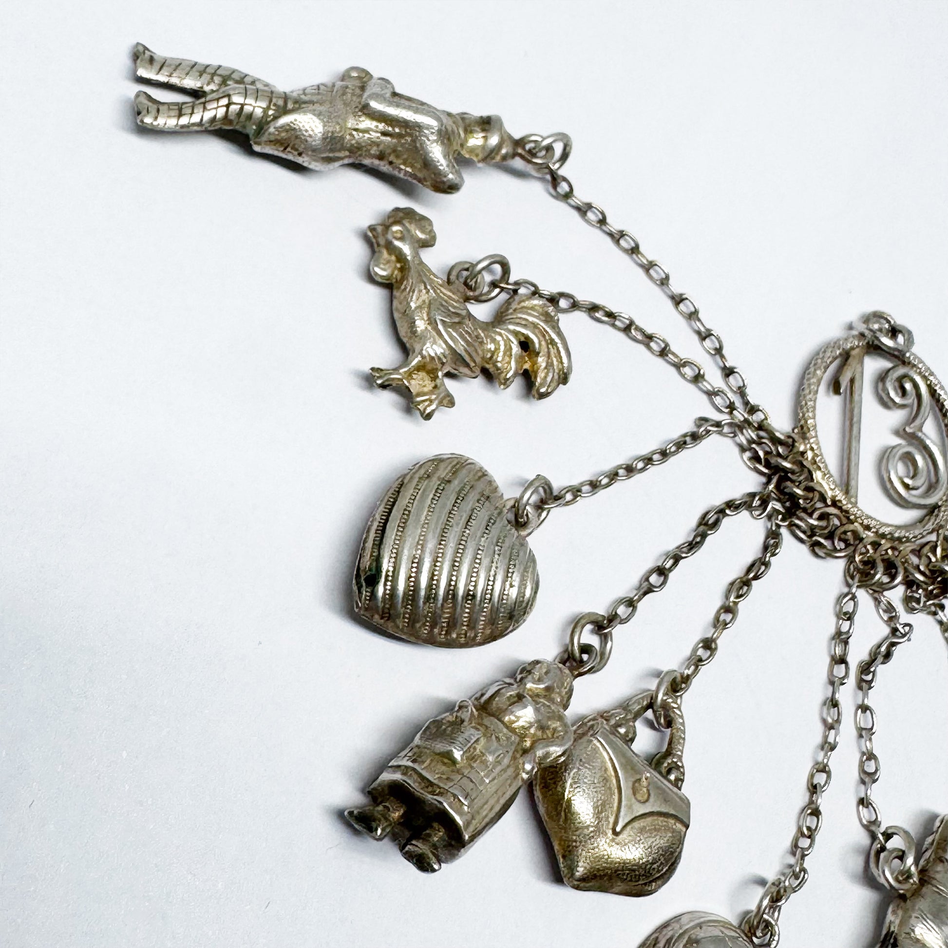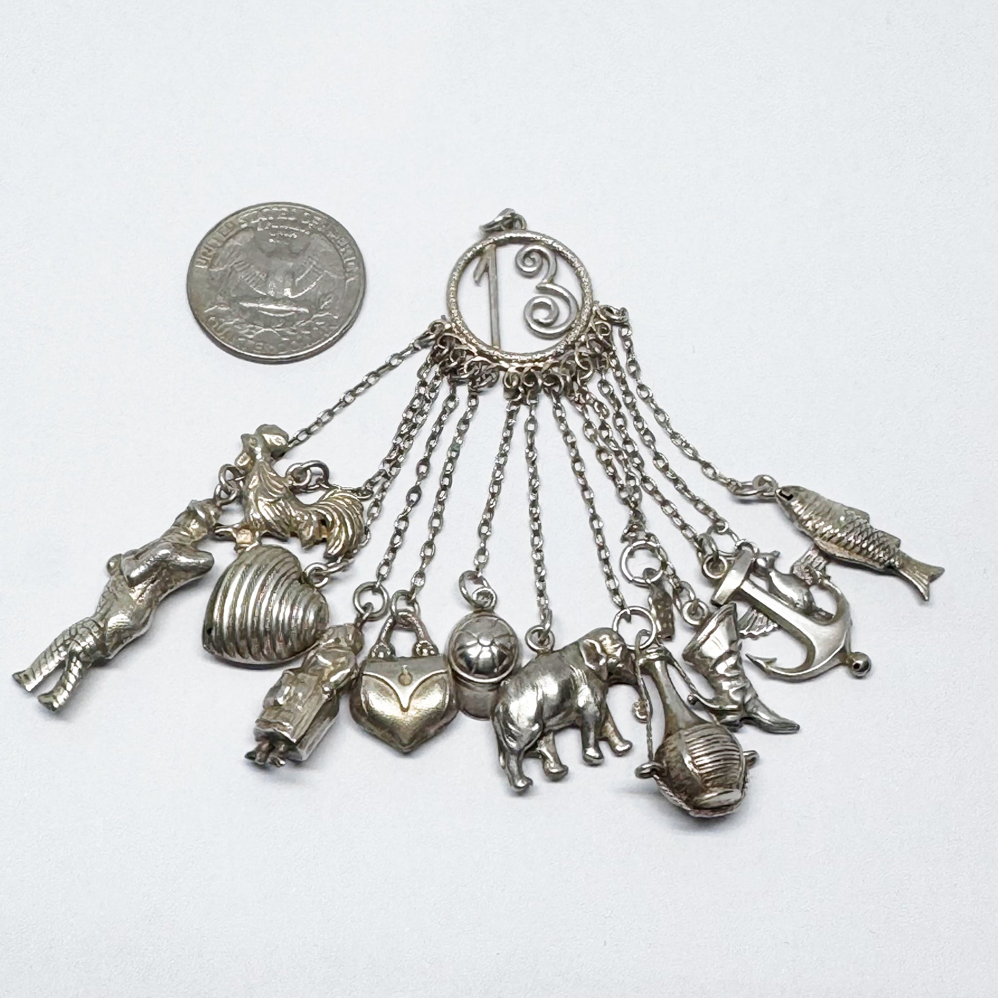 Vintage Silver Neapolitan Lucky Charm Pendant, 13 Talismans Italian Folk, Chatelaine